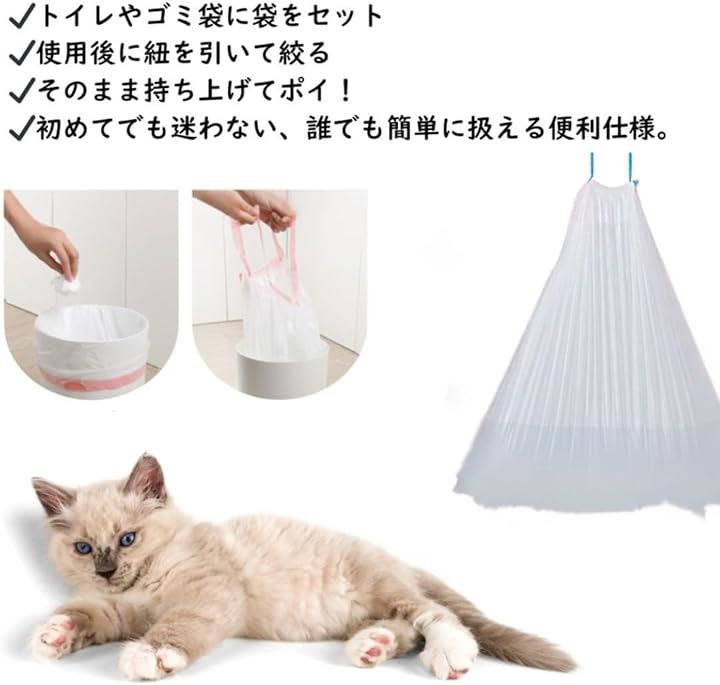 互換 猫 トイレ ゴミ袋 引き締め式 厚手 白 ロール式 自動 交換簡単 大容量