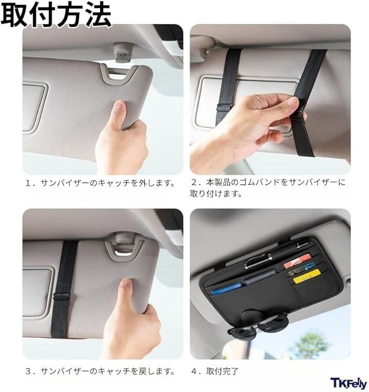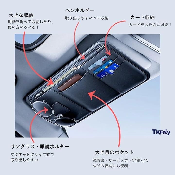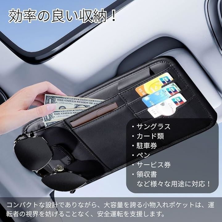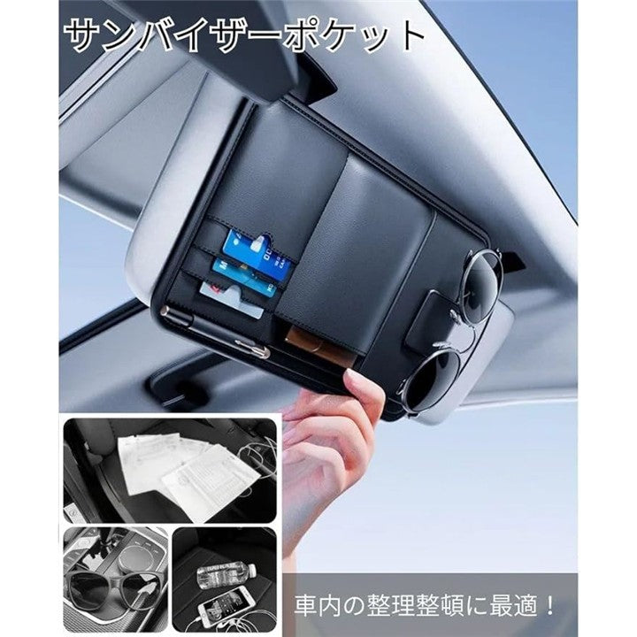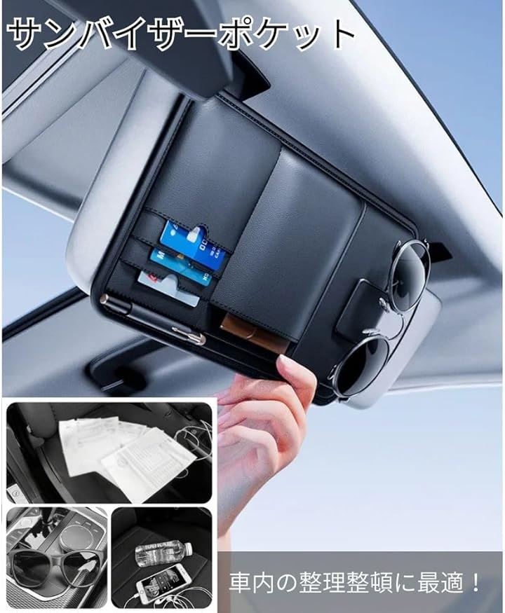 サンバイザーポケット 収納ポケット 車 眼鏡ホルダー レザー調 カード 小物入れ