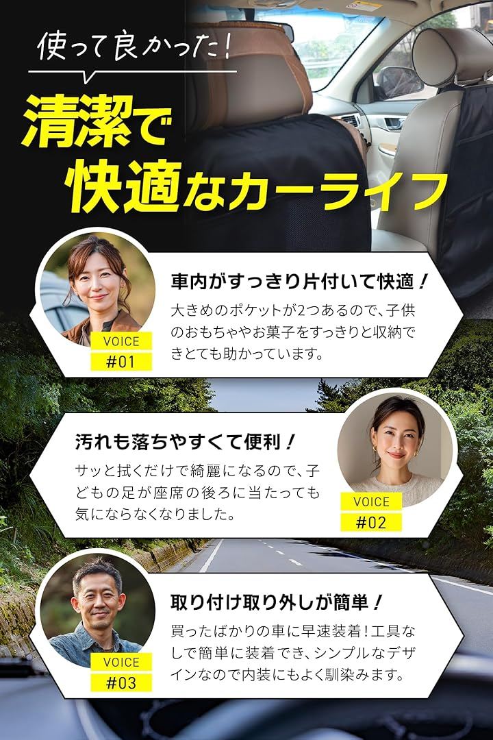 カーライフアドバイザー監修 キックガード 車 後部座席 シートカバー 汚れ防止 防水 子供 背面 収納 ポケット
