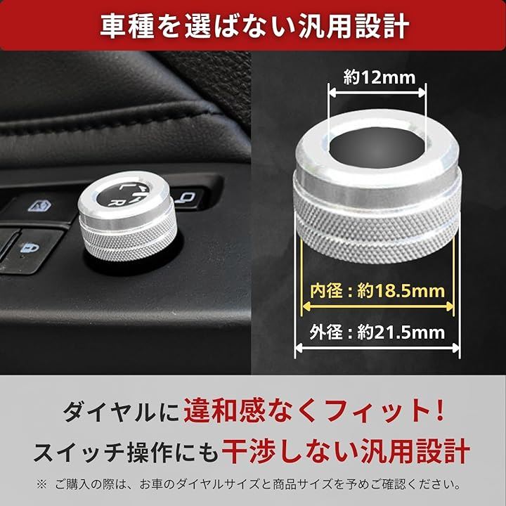 電動 ドアミラー 調整 ノブ スイッチ アルミ ダイヤル リング カバー 両面テープ 不要 汎用 カスタム カスタマイズ パーツ ドレスアップ 内装 おしゃれ オシャレ