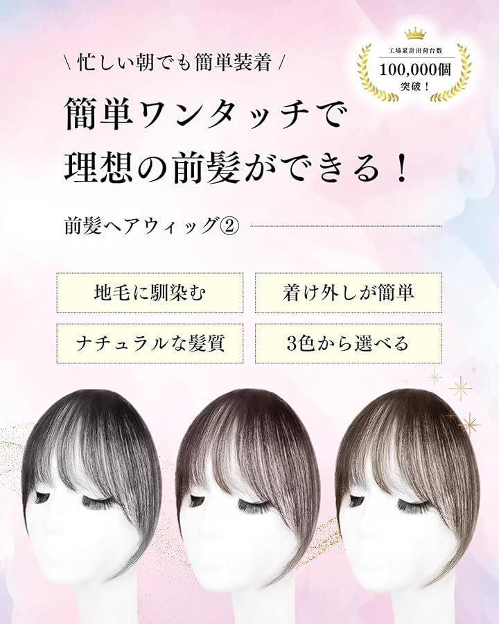 前髪ウィッグ 部分ウィッグ 人毛 ぱっつん シースルーバング 自然 クリップ付き 耐熱 バレない ふわふわ 小顔効果 ボリュームアップ レディース ヘアピース つけ毛