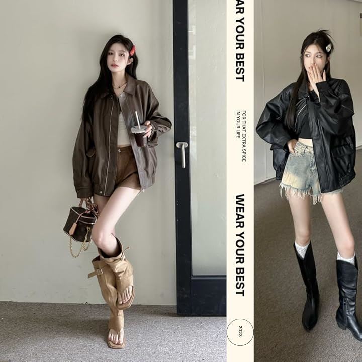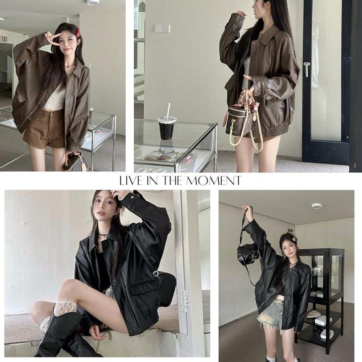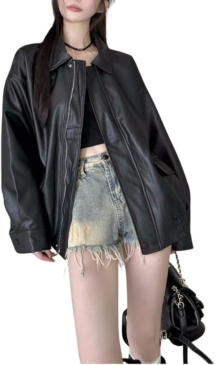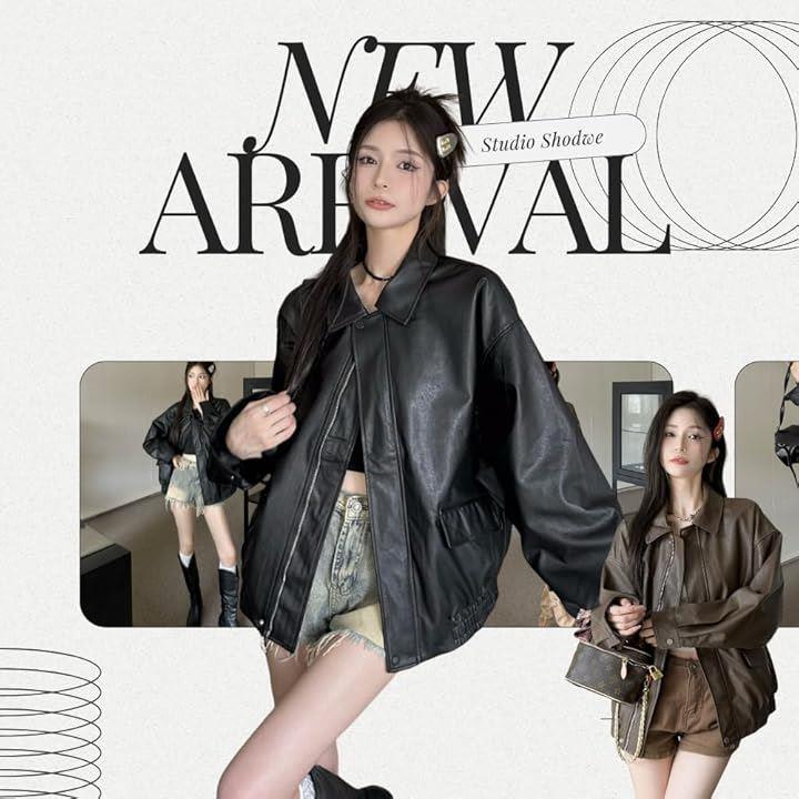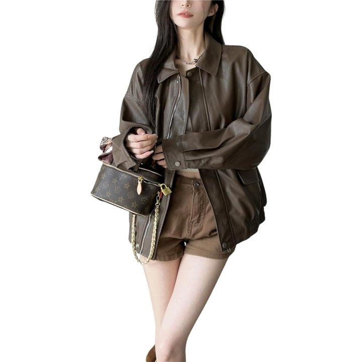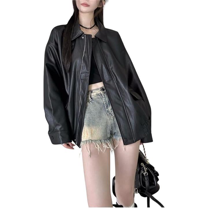 レディース レザージャケット PUレザー オーバーサイズ ブルゾン ゆったり ビッグシルエット スタンド襟 きれいめ カジュアル 春秋 韓国風