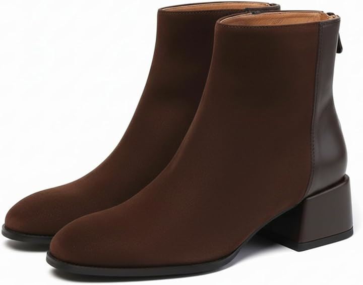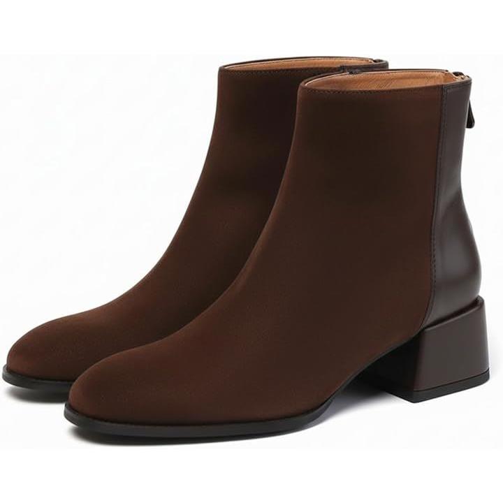 「上品なスエード調デザインで秋冬コーデを格上げ」 落ち着いたスエード調素材が高級感を演出するショートブーツ。