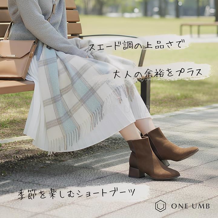 [ワン アンブ] ブーティ レディース ショートブーツ スエード 革 秋冬 痛くない オフィスカジュアル 靴 フェミニン |