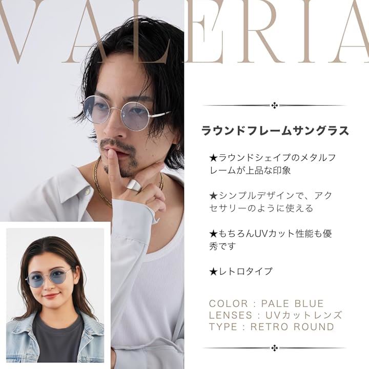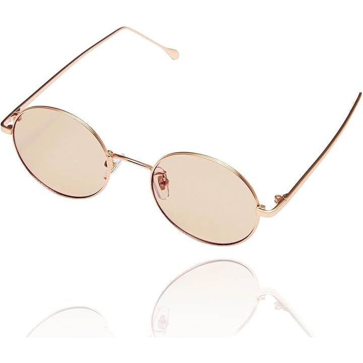 ラウンドサングラス メタルフレーム 円形 UVカット ケース付き メンズ レディース