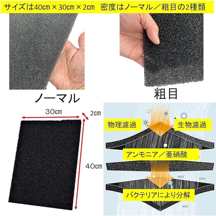 水槽 スポンジフィルター 30x40x2cm 2枚セット 濾過材 ろ材 アクアリウム 板