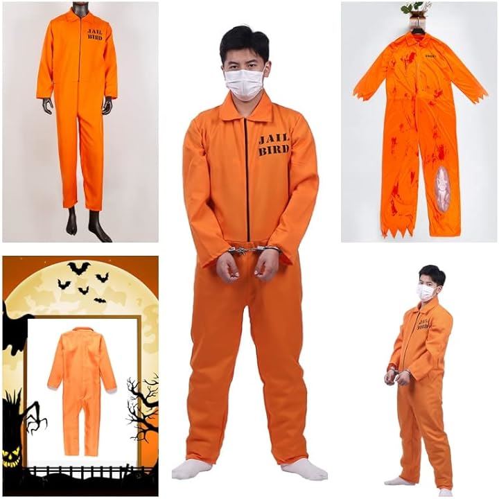 囚人服 長袖 コスプレ ハロウィン 衣装 仮装 コスチューム 大人用 学園祭 文化祭 つなぎ 作業着 かっこいい かわいい おしゃれ 人気 レディース