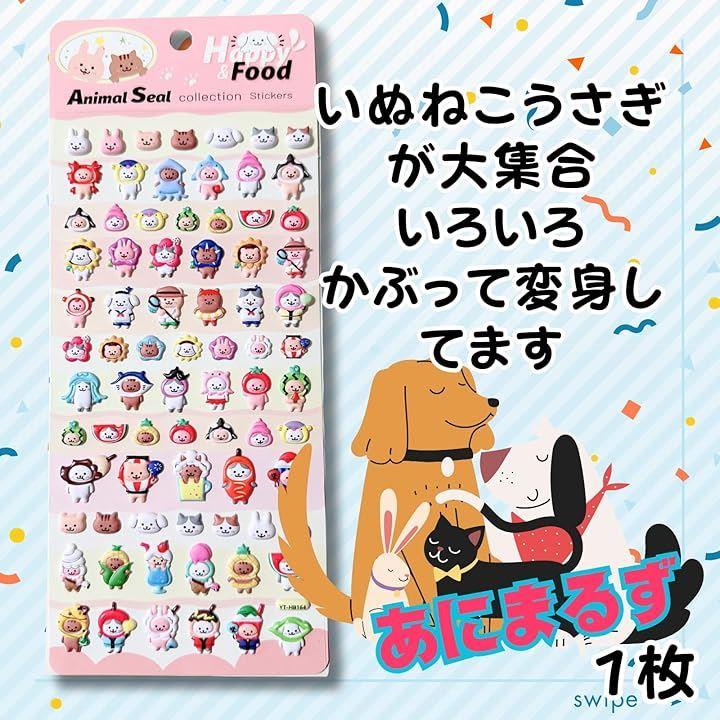もちもちシール ぷにぷに もっちり アニマル&フード かわいい ステッカー 手帳 スマホ デコ