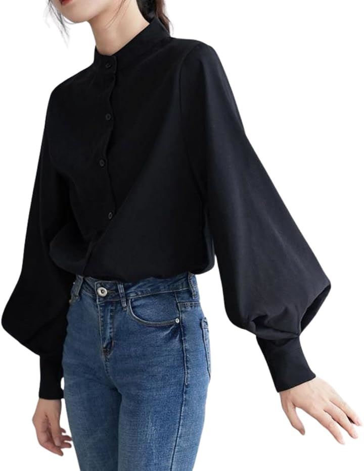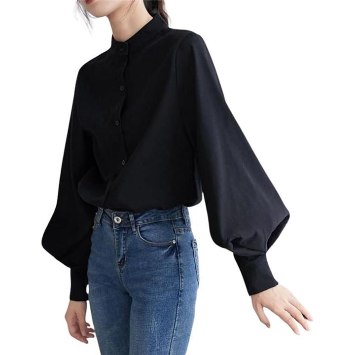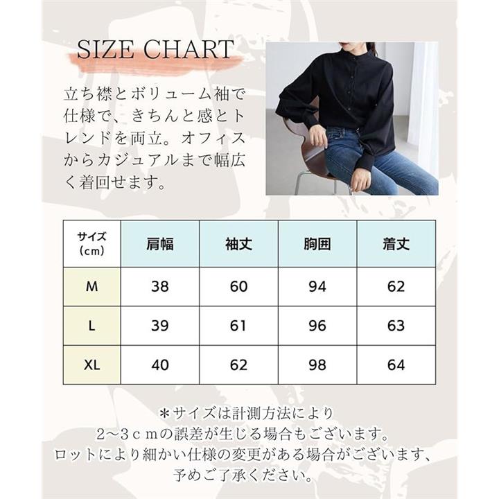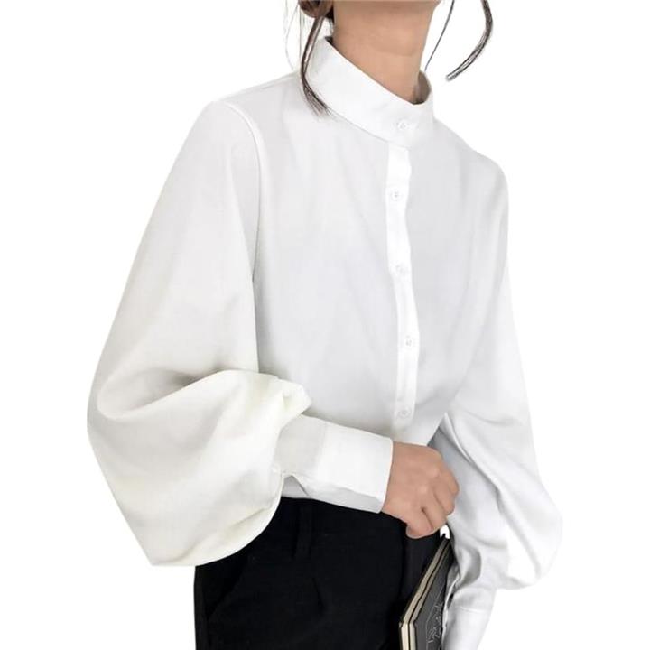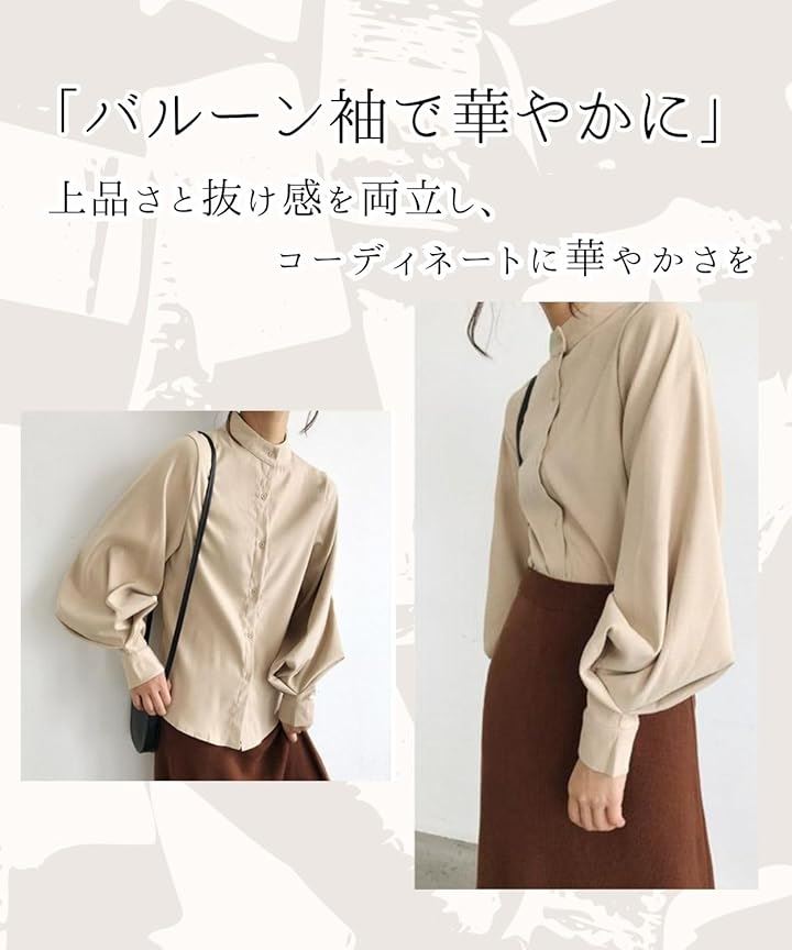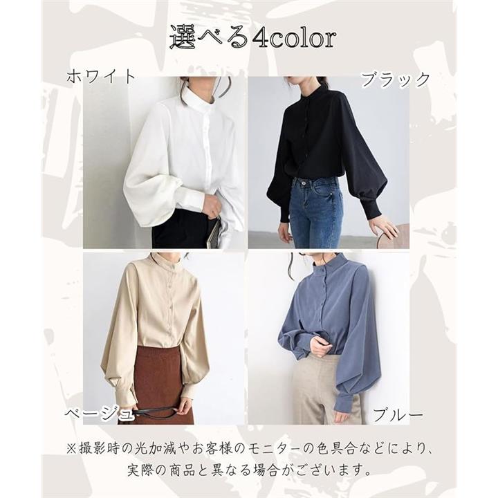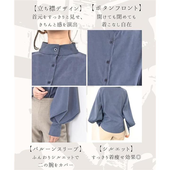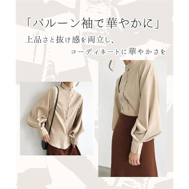 [Four leaf] 立ち襟 ブラウス レディース バルーン袖 長袖 シャツ トップス 無地 シンプル きれいめ 体型カバー オフィス カジュアル 通勤 フォーマル 大人 可愛い おしゃれ 着回し 洗える |