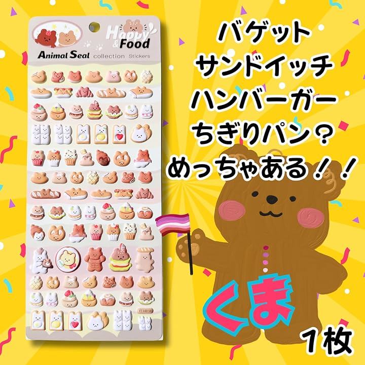 もちもちシール ぷにぷに もっちり アニマル&フード かわいい ステッカー 手帳 スマホ デコ