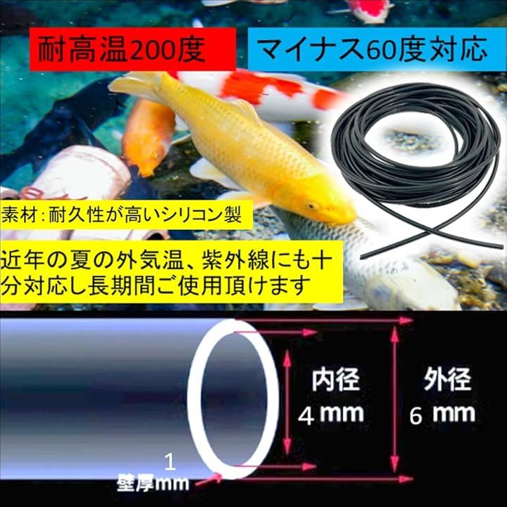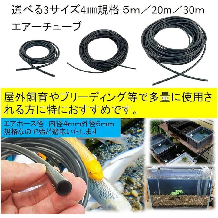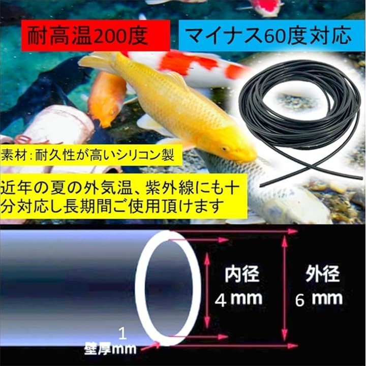 エアチューブ 内径4mm 外径6mm 黒 水槽 シリコン ソフトチューブ エアーホース 酸素 鯉 メダカ 熱帯魚 観賞魚 アクアリウム