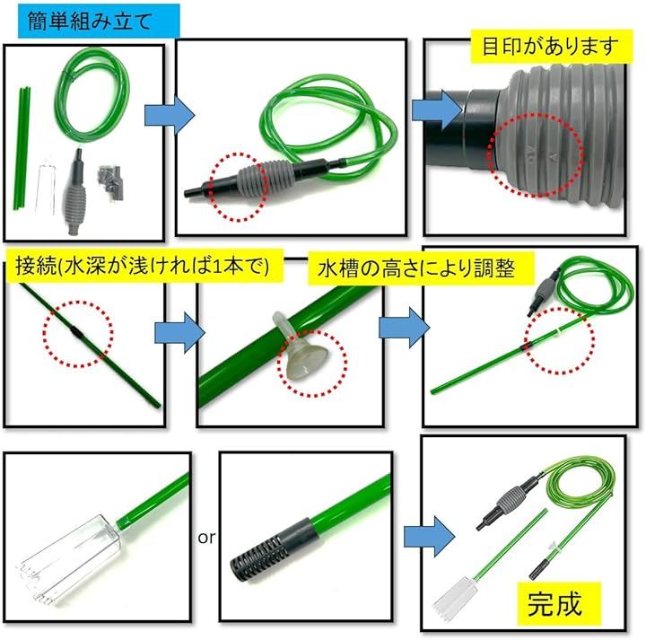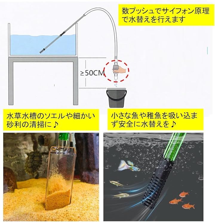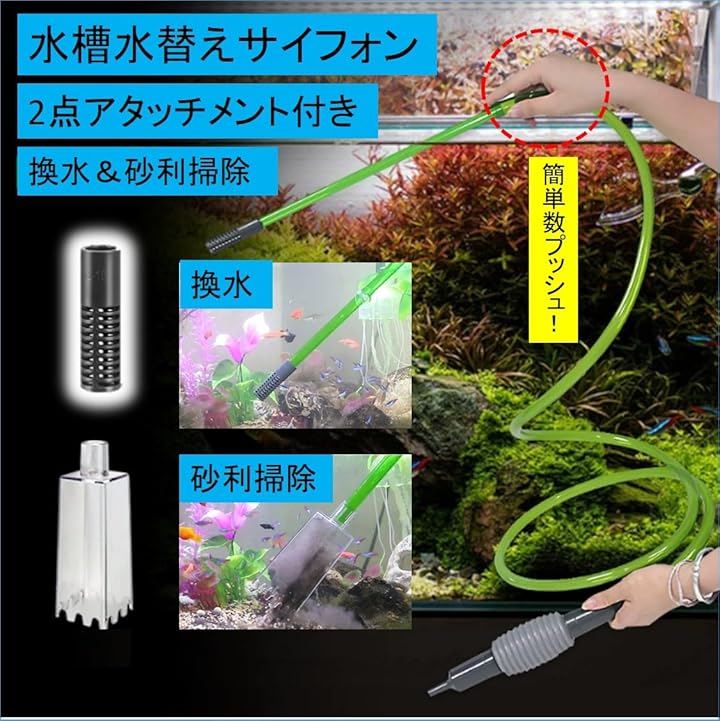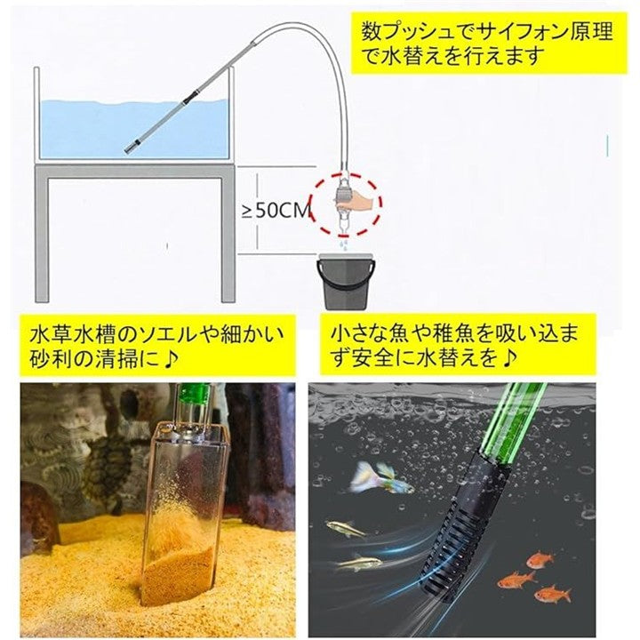 水槽 手動 水交換 水替え 換水&砂利掃除 アタッチメント付き サイフォン 式 底砂用クリーナー 熱帯魚 金魚 海水魚 メダカ