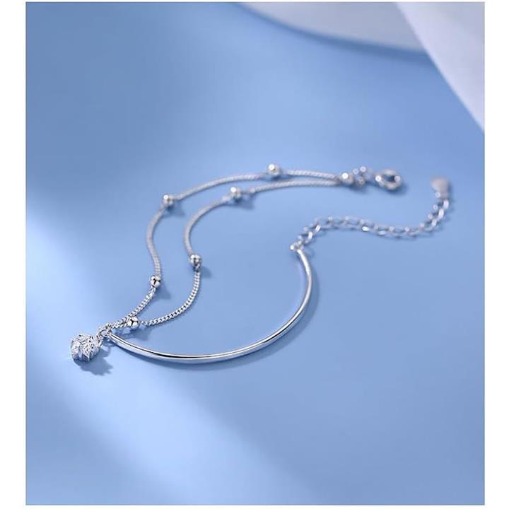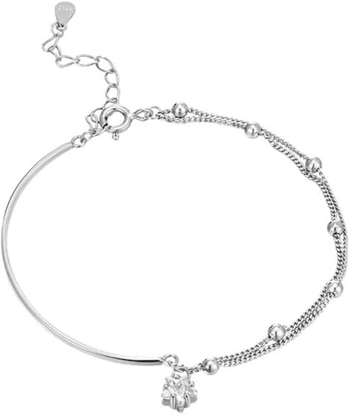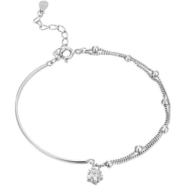 ブレスレット レディース アシンメトリー ボールチェーン シルバー 二連 重ね付け 一粒 スターモチーフ