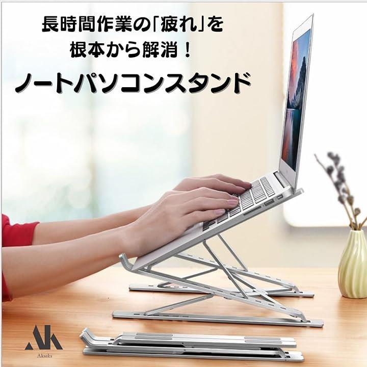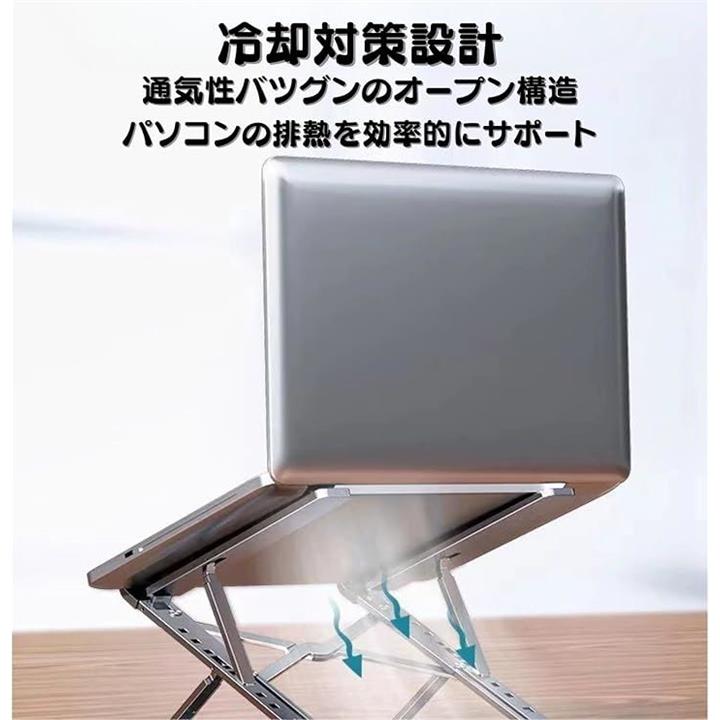 ノートパソコンスタンド PCスタンド 卓上 アーム 冷却 折りたたみ式 アルミ合金製 高さ調整 収納袋付き