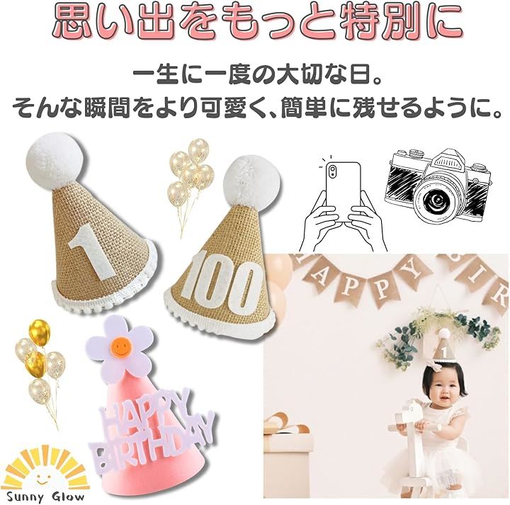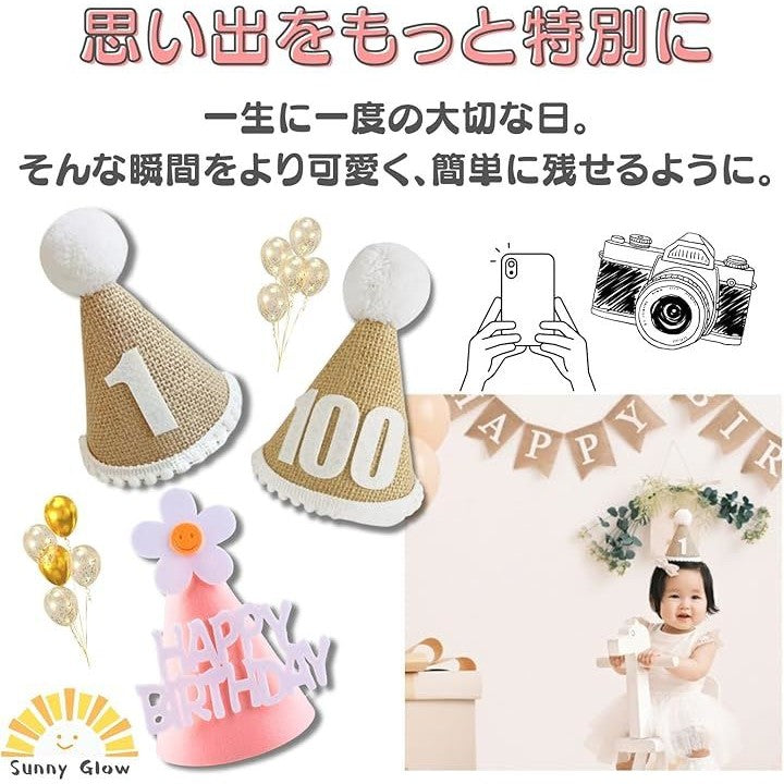 ハッピーバースデー 誕生日 飾り付け 赤ちゃん 帽子 パーティー ハット 装飾 シンプル ナチュラル 撮影 小物 アイテム