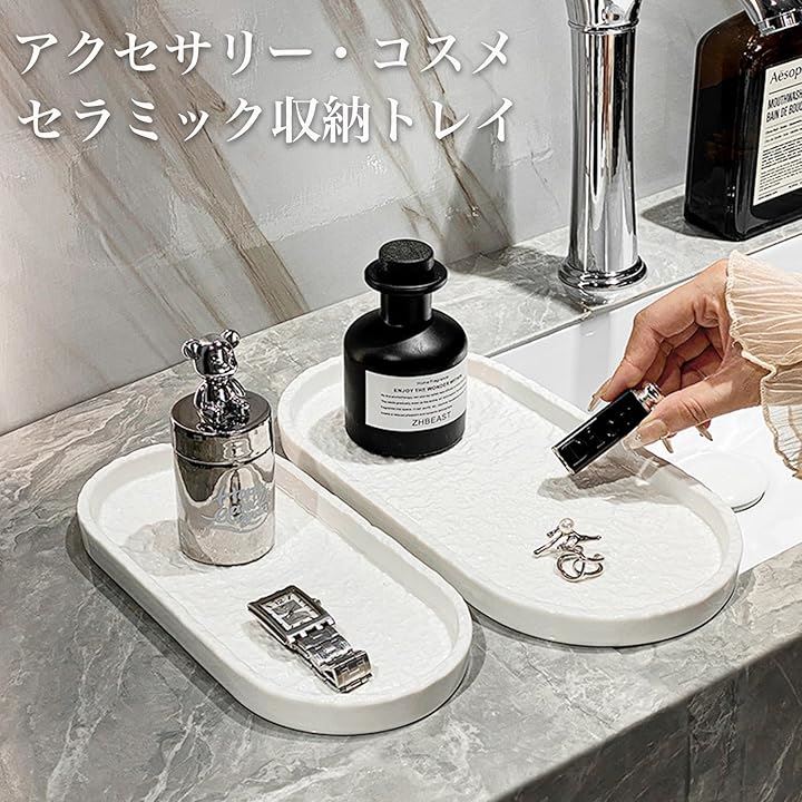 アクセサリー トレイ セラミック 収納 コスメ 化粧品 ジュエリー トレー 小物置き おしゃれ キー 鍵おき 石風 モノトーン シンプル インテリア 洗面所 洗面台 バスルーム 玄関