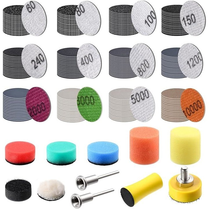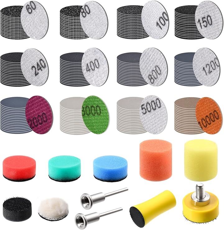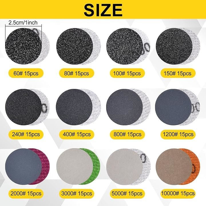 耐水サンドペーパーセット 180枚12種類 ウェット&ドライ両用 耐水ペーパー 紙やすり スポンジバフ ポリッシャー ハンドサンダー バフ研磨パッド 電動ポリッシャー用