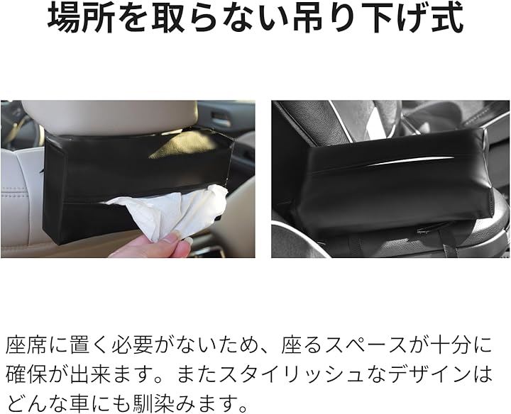 車 ティッシュケース アルファード 吊り下げ サンバイザー 後部座席 カー用品 ジムニー ハイエース PUレザー おしゃれ 省スペース アームレスト 収納 箱