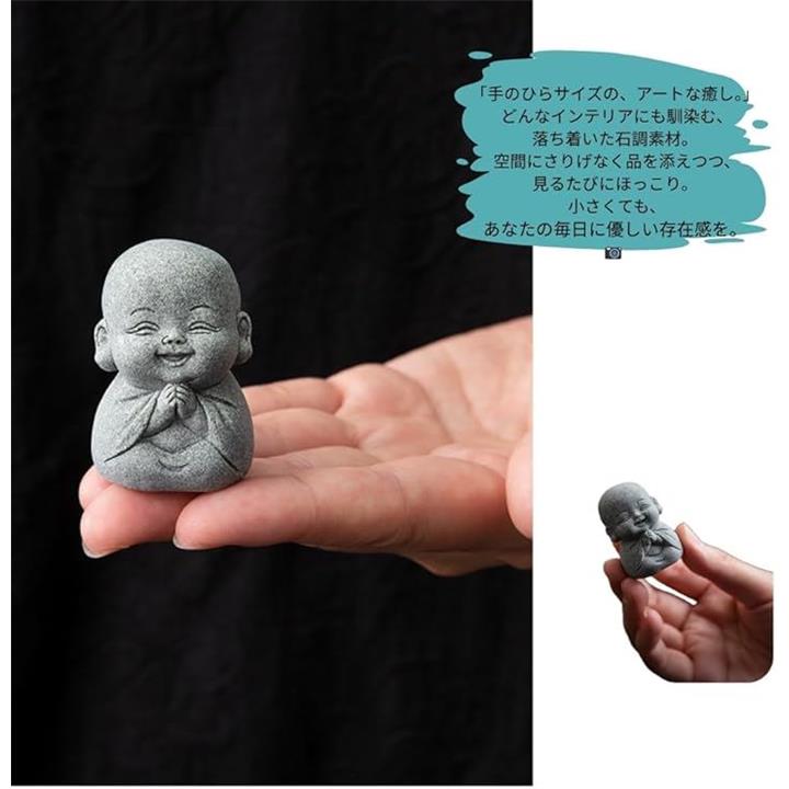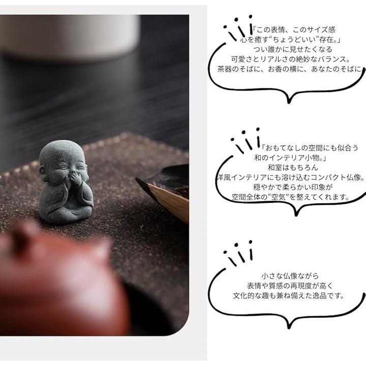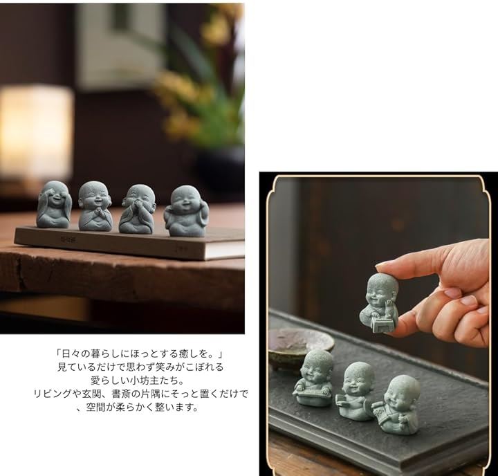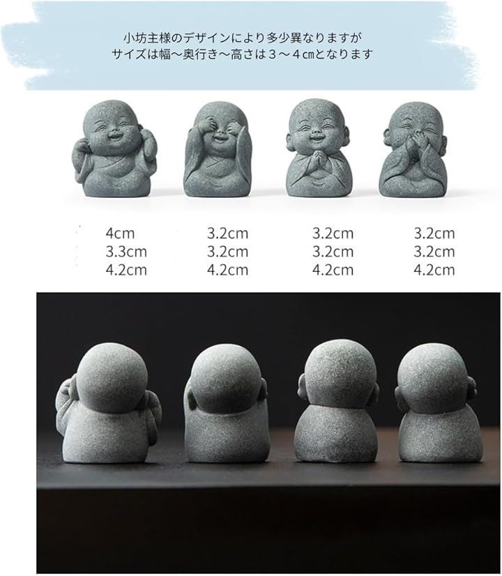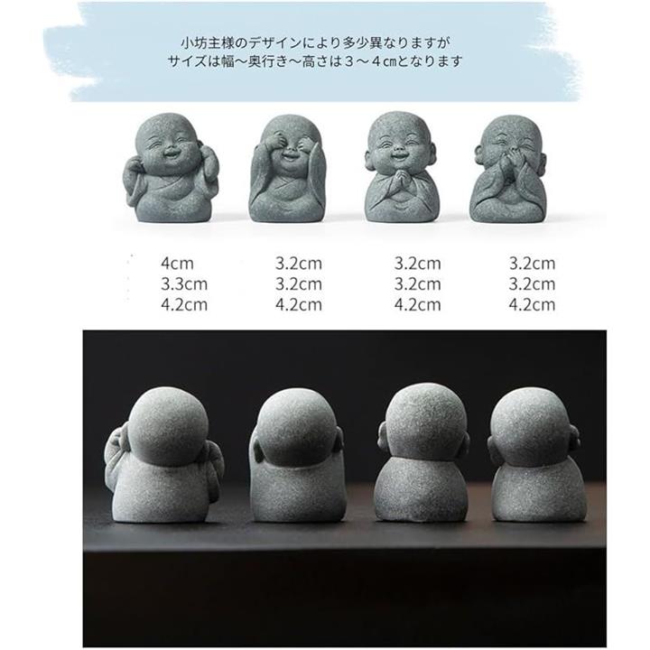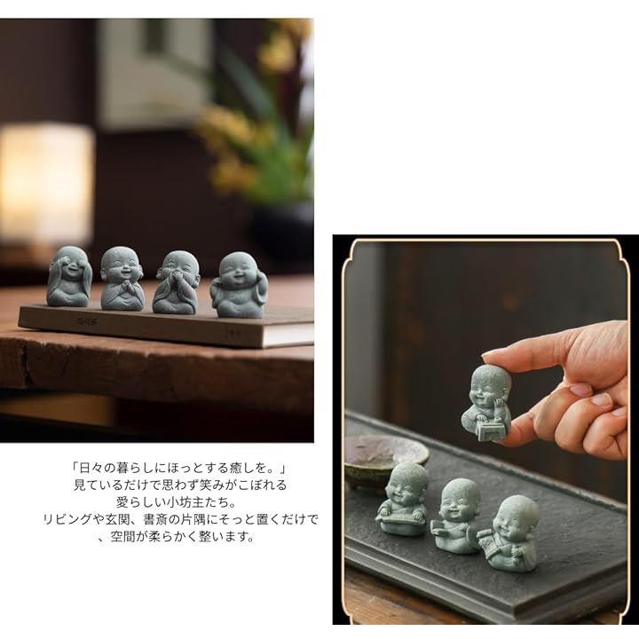 石造風 小僧 4体 セット 置物 仏教 文人 茶席 インテリア ミニ サイズ 飾り 癒し 卓上 仏像