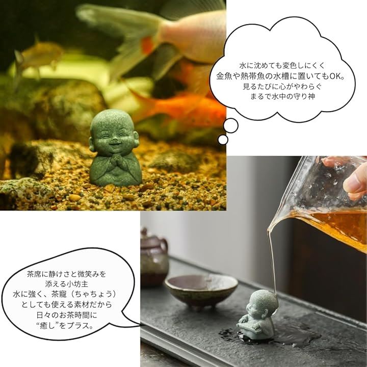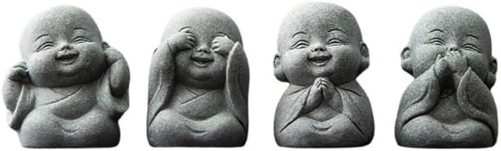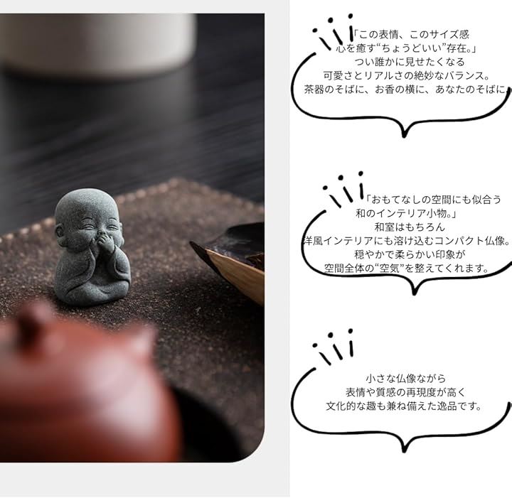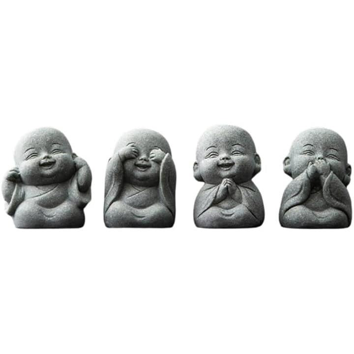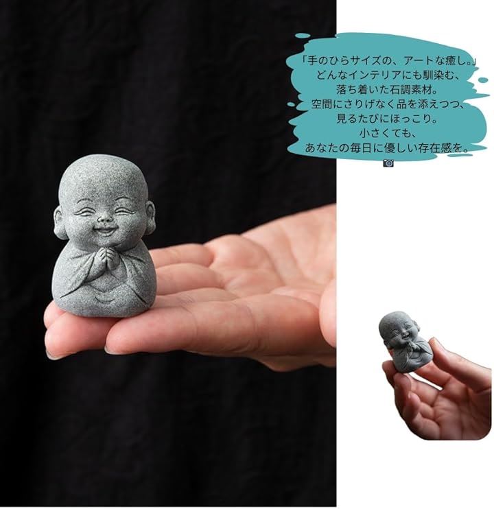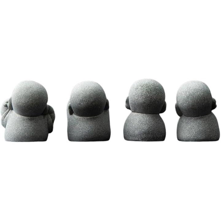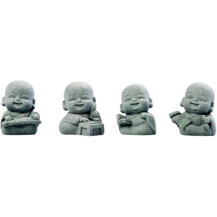 石造風 小僧 4体 セット 置物 仏教 文人 茶席 インテリア ミニ サイズ 飾り 癒し 卓上 仏像