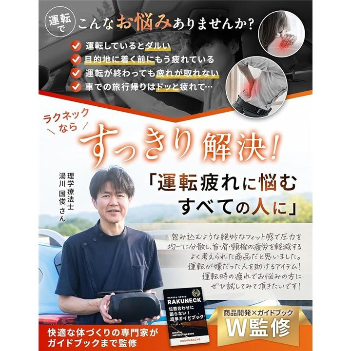 長時間や長距離の運転で、首や肩に負担を感じる方におすすめの「KURUMARCHE RAKUNECK (クルマルシェ ラクネック)」。
