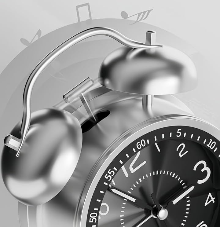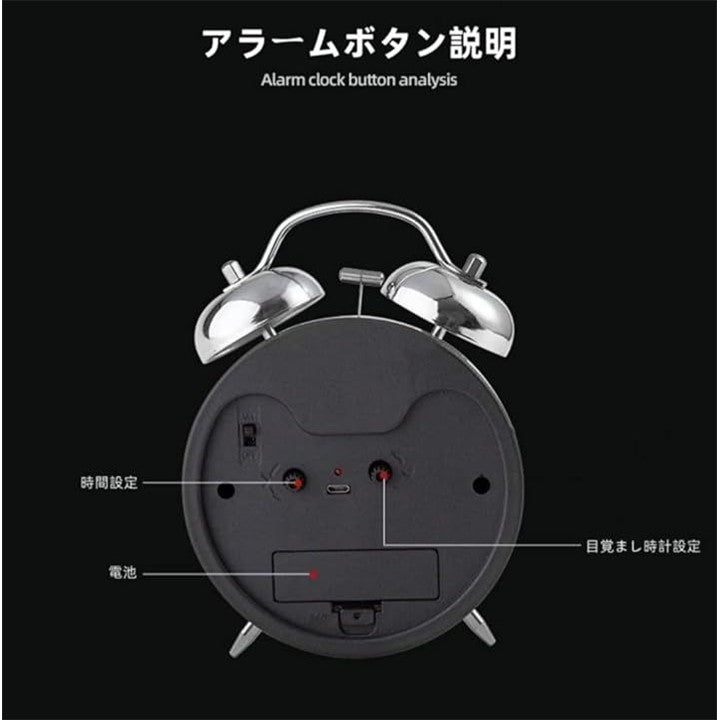 大音量 うるさい 爆音 アナログ 静音 目覚まし時計 起きれる アラーム おしゃれ 可愛い ベル音 多機能 金属光沢 北欧 設定簡単 バックライト付き 着信音 機械式 ダブルベル 電池別売