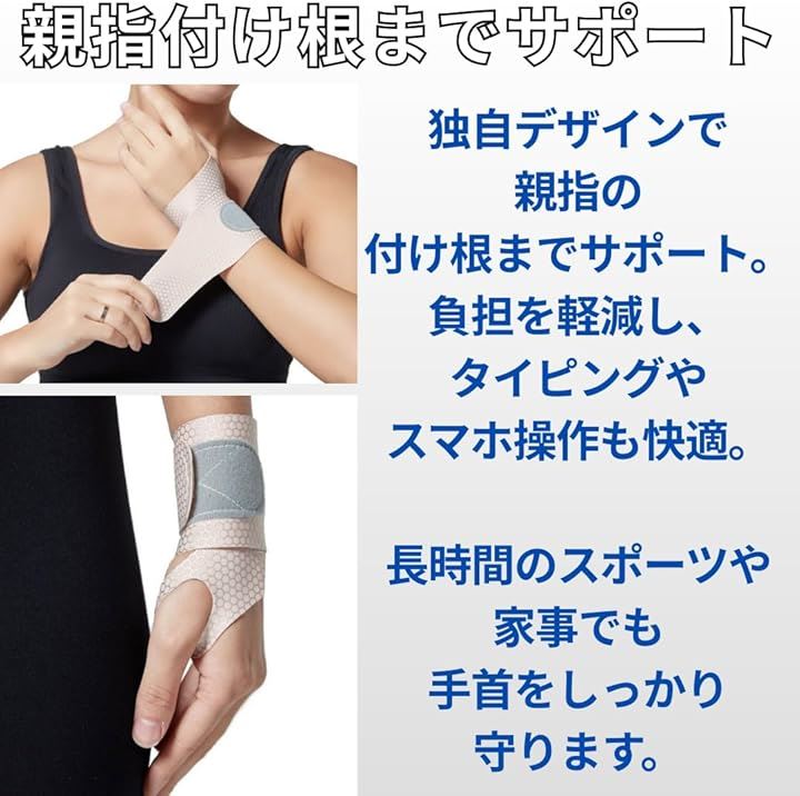 手首サポーター 固定 薄手 手首保護 通気性 親指ホール付き 軽量 スポーツ用 家事 育児 リストラップ パソコン作業 男女兼用 左右兼用