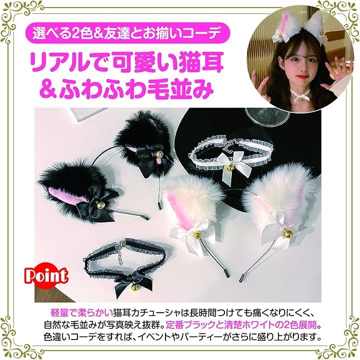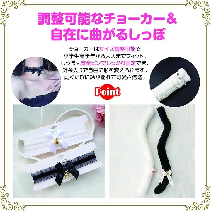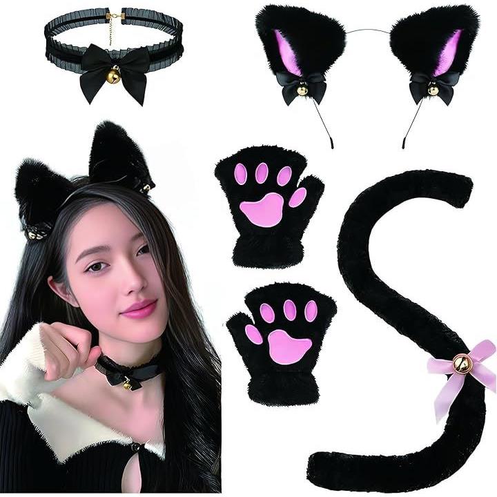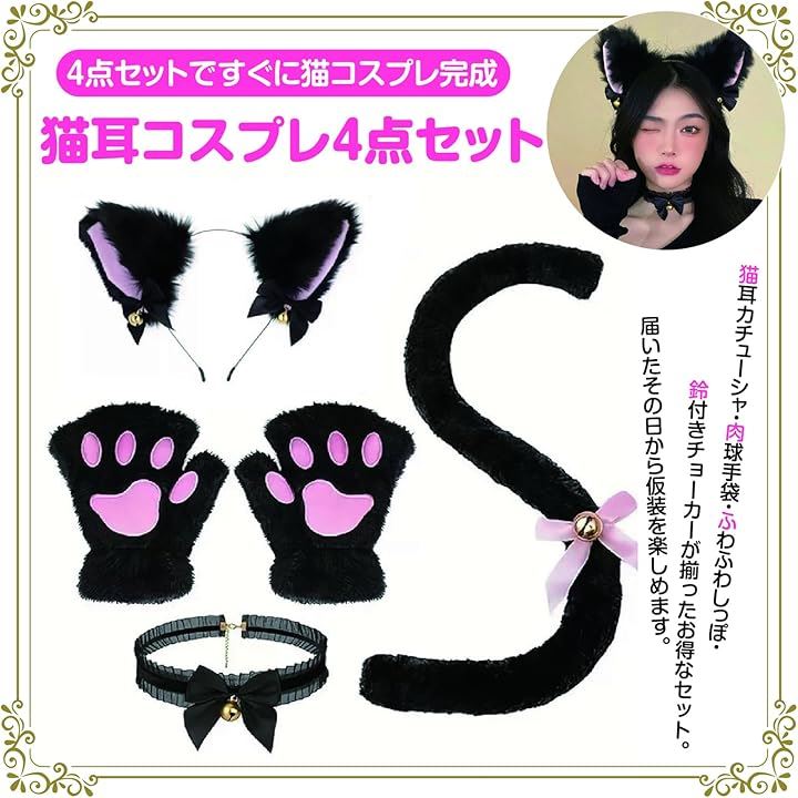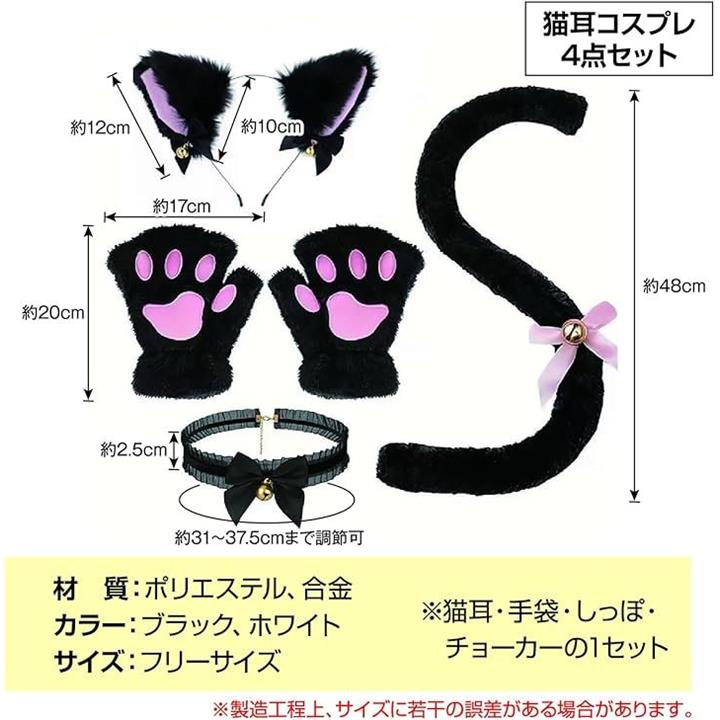 猫耳カチューシャ 肉球手袋 しっぽ チョーカー 4点セット ハロウィン コスプレ