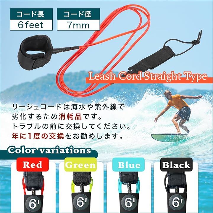 リーシュコード 6ft 7mm サップ サーフィン サーフボード sup