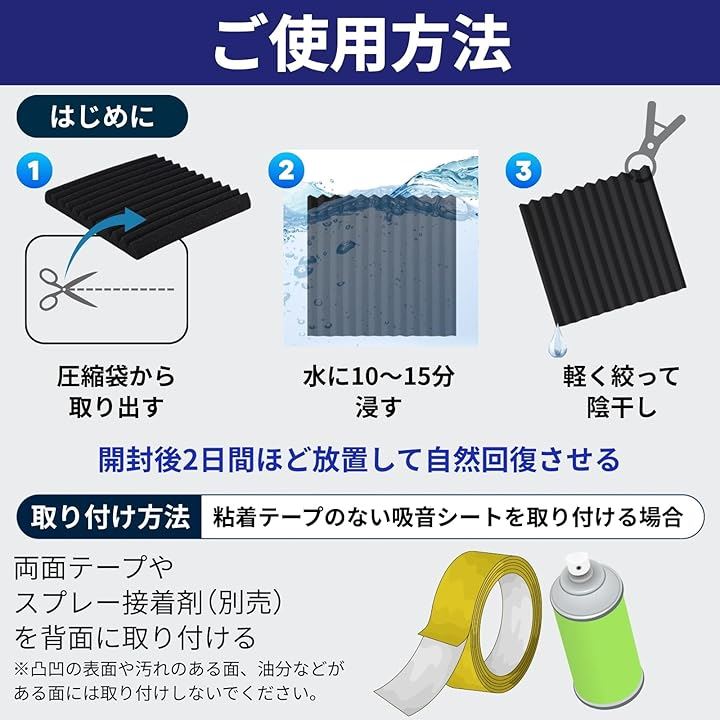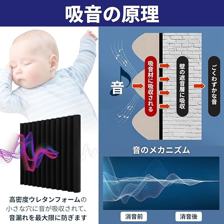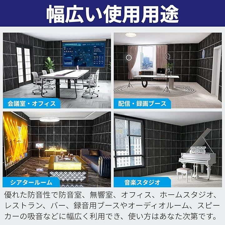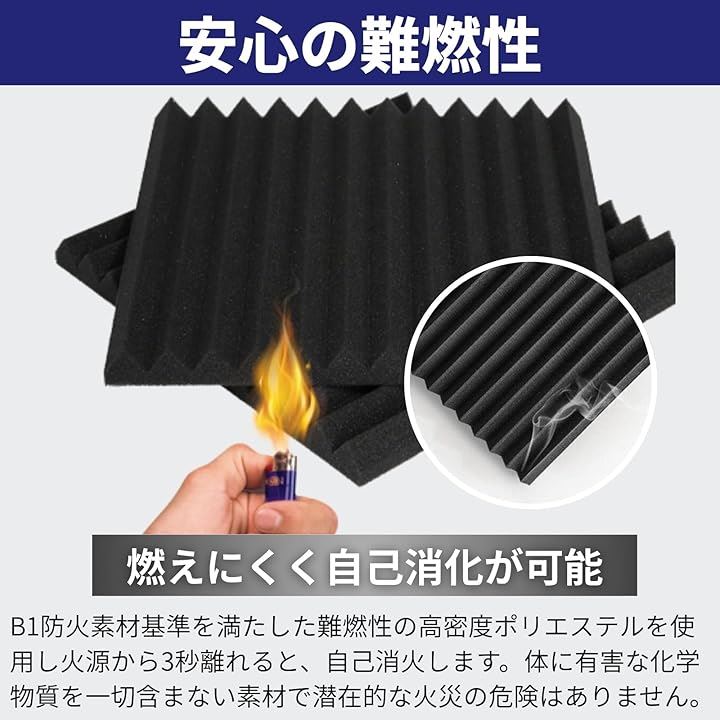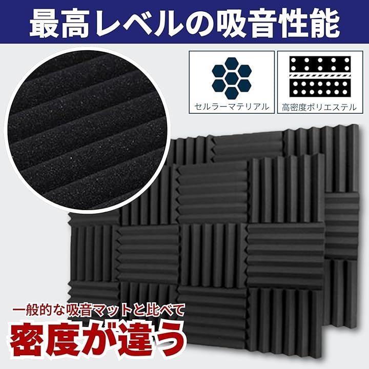 吸音材 防音シート 吸音パネル 壁用 セット 難燃 ウレタンフォーム 黒/ホームシアター・録音室対応