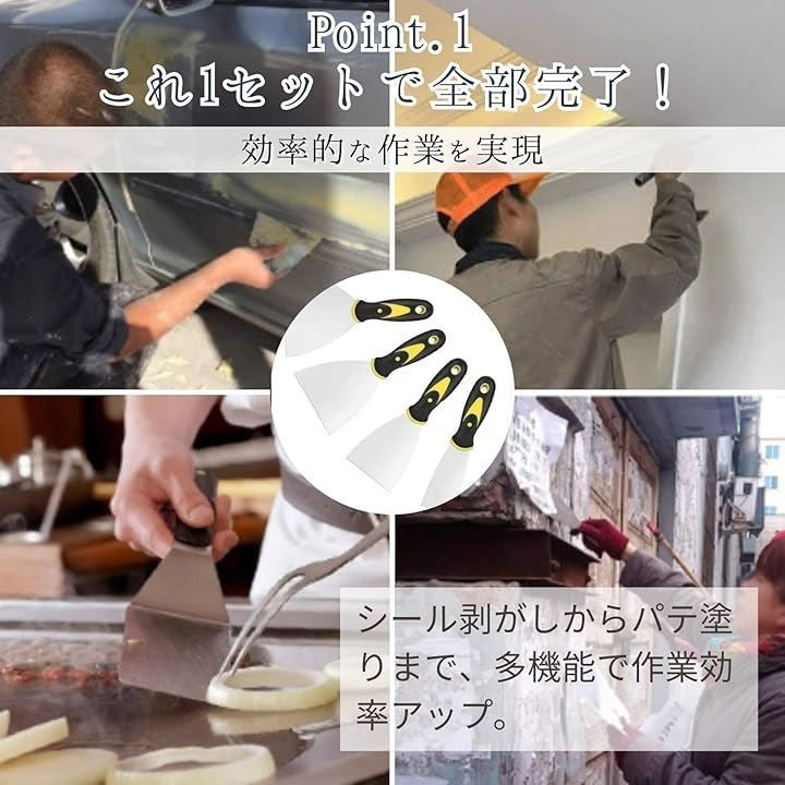 スクレーパー シール剥がし ステッカーはがし サビ落とし パテベラ ヘラ 工具 4点セット