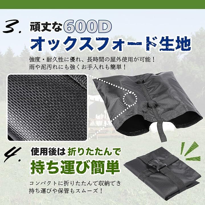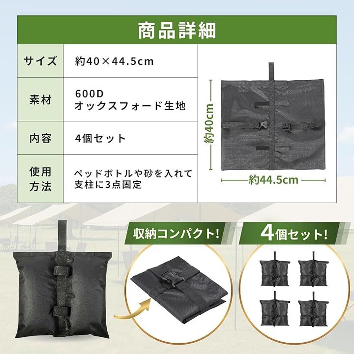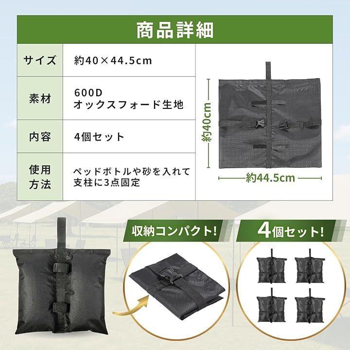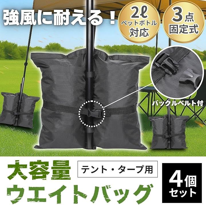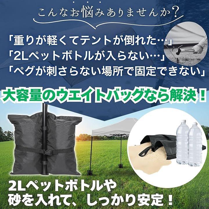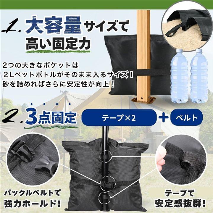 テント 重り 固定ベルト付 タープ ウエイト 砂袋 重石 おもり 大容量 4個セット