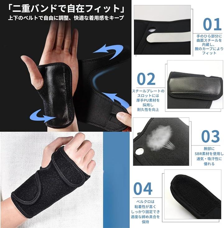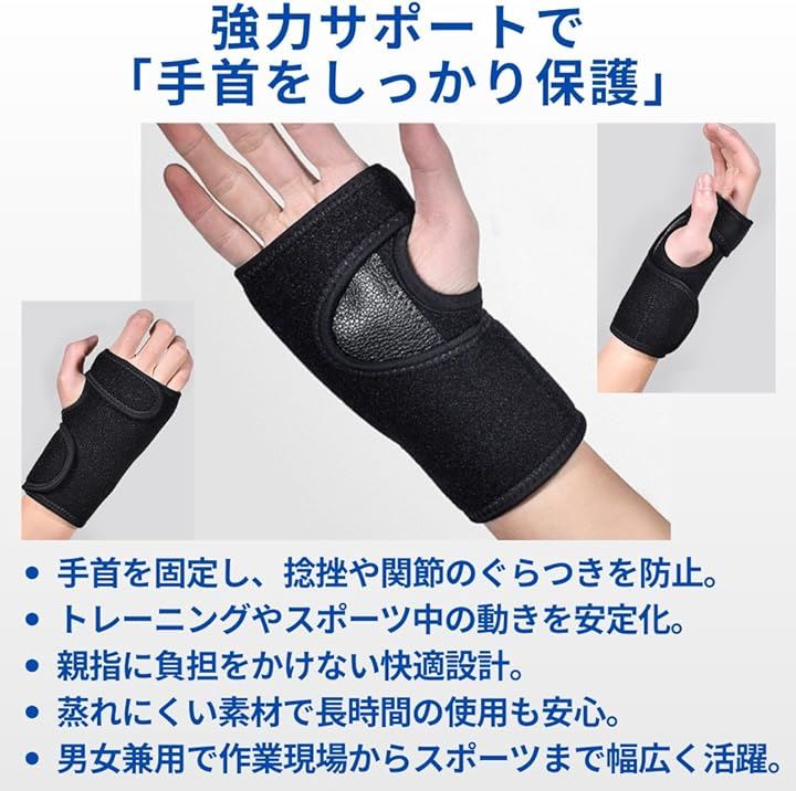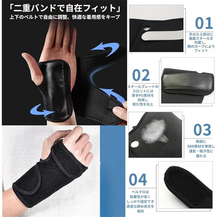 手首サポーター 固定 金属プレート内蔵 予防 保護 理学療法士オススメ リストラップ フリーサイズ 黒 通気性 クッション素材 手洗い可能