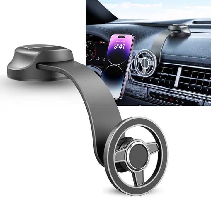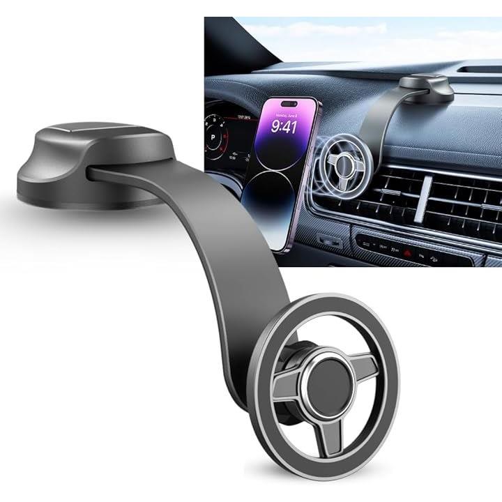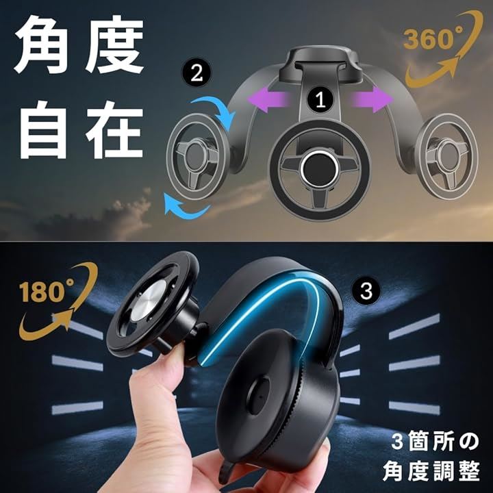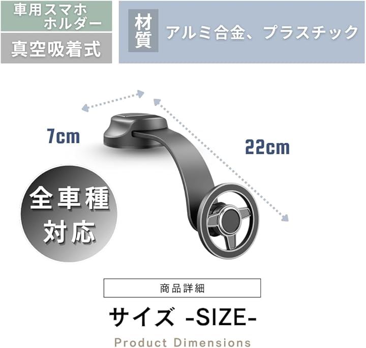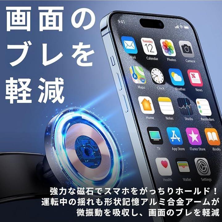 真空吸着式スマホホルダー 車 強力 マグネット 車載ホルダー 360°回転可能 形状記憶アーム
