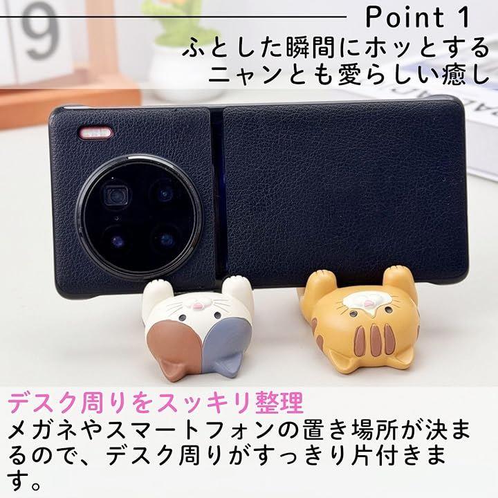 猫 スマホスタンド メガネスタンド メガネ立て メガネ置き ネコ 三毛猫 2個セット
