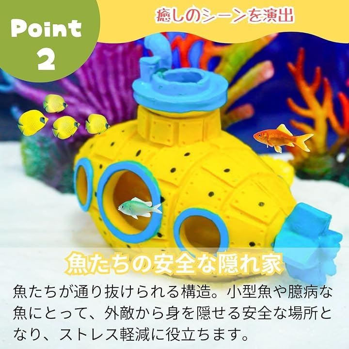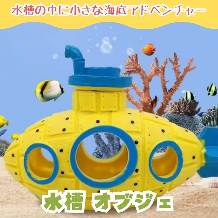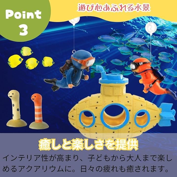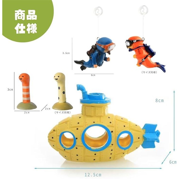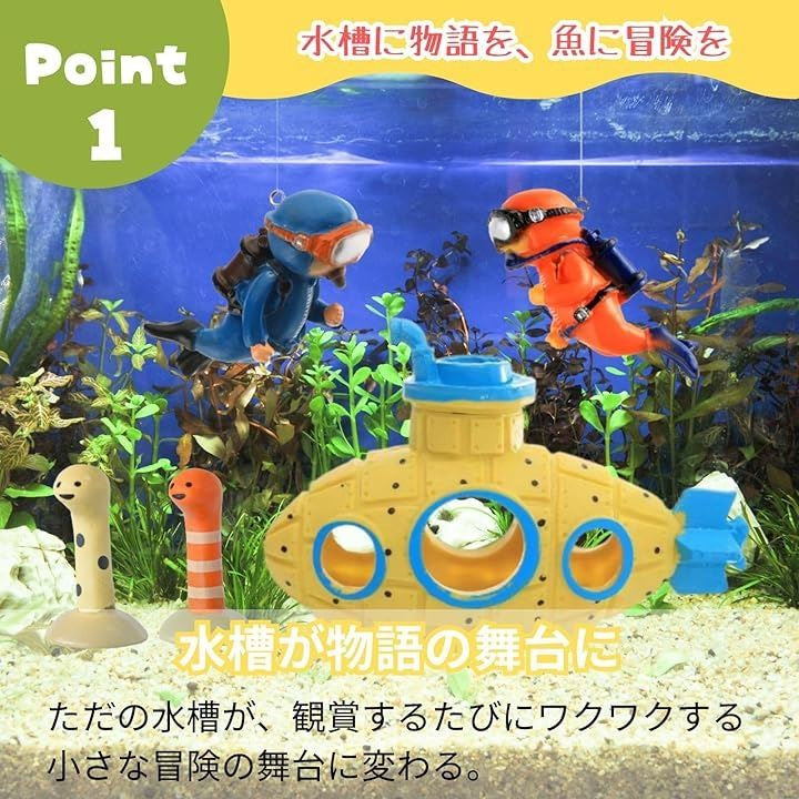 水槽 オブジェ アクアリウム 隠れ家 オーナメント インテリア 潜水艦 チンアナゴ2匹 ダイバー2人 5点セット