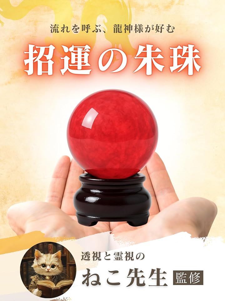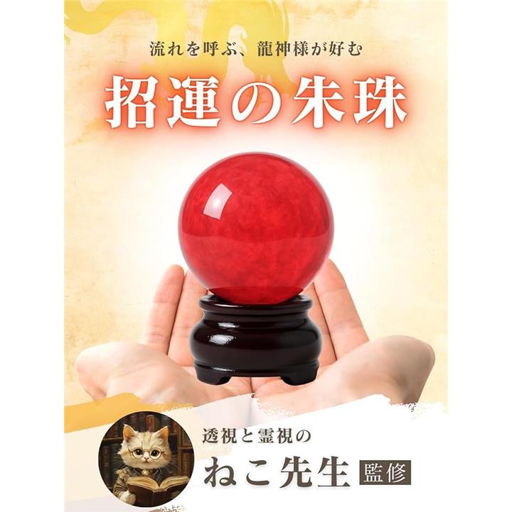 招運の朱珠赤い玉 風水 玄関 置物 インテリア 龍神 水晶 クリスタル 開運 金運 全体運 総合運 パワーストーン 縁起物 占い師監修