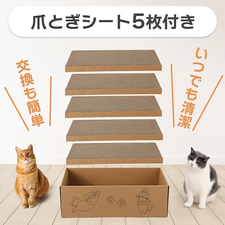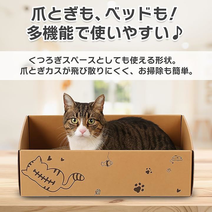消耗品である爪とぎをまとめて購入できる便利さが、飼い主の手間を省き、コスト面でも優れています。