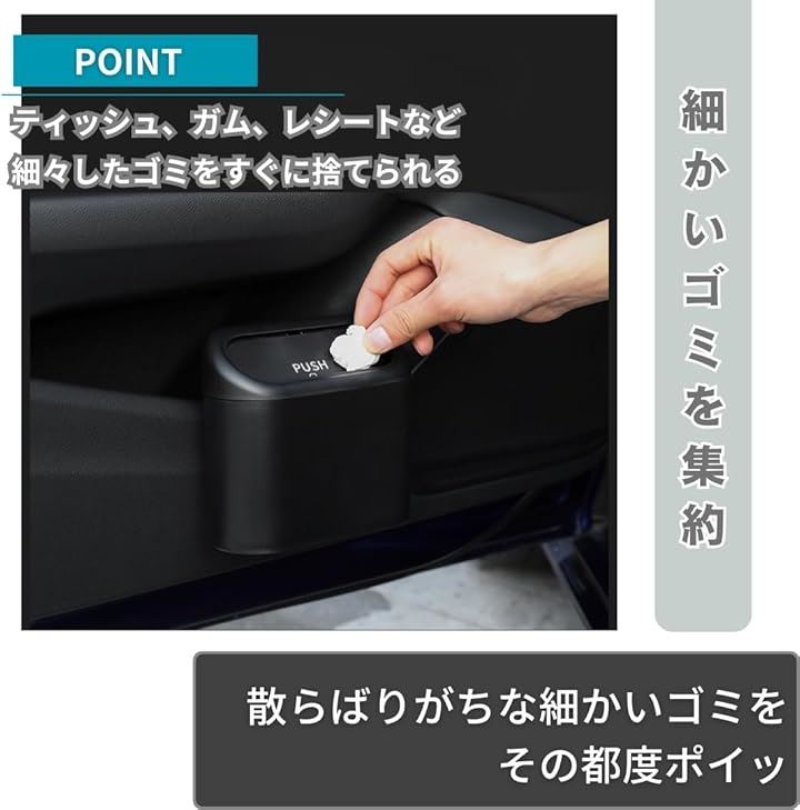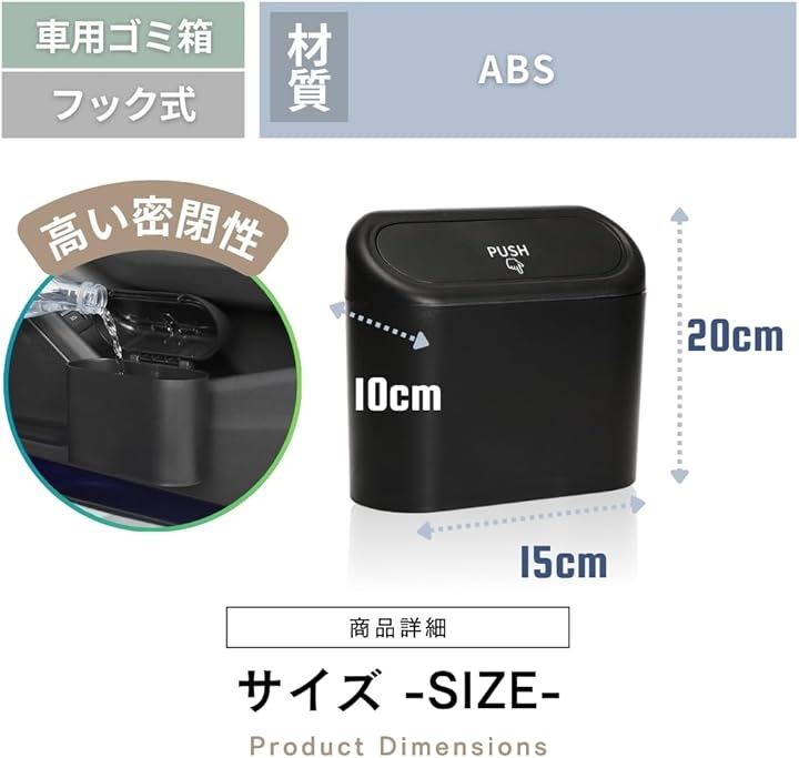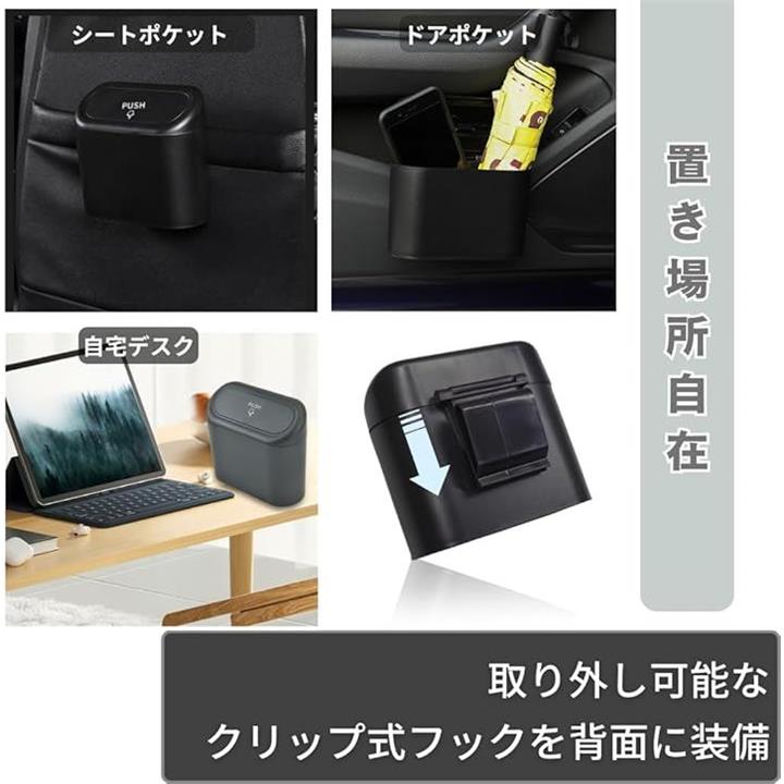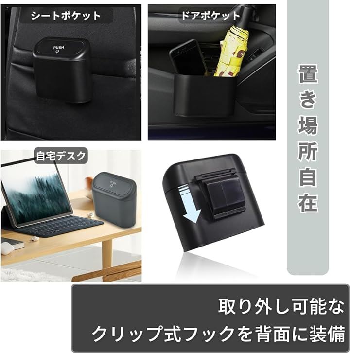 車 ゴミ箱 フック式 ポケット 吊り下げ ワンタッチ開閉 小型 スリム