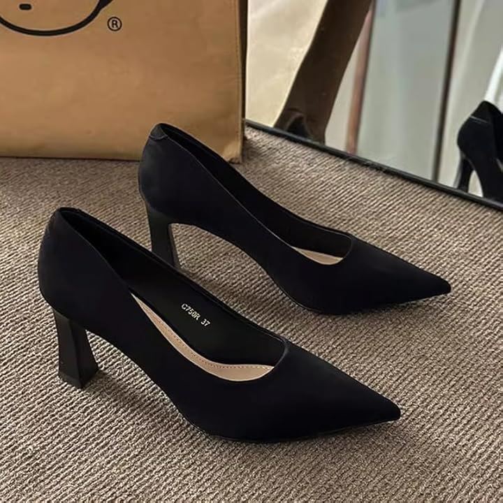ハイヒール 5cm レディース ポインテッドトゥ 安定感のあるチャンキーヒール 痛くない 歩きやすい オフィスカジュアル 通勤 ビジネス 結婚式 フォーマル カジュアル兼用