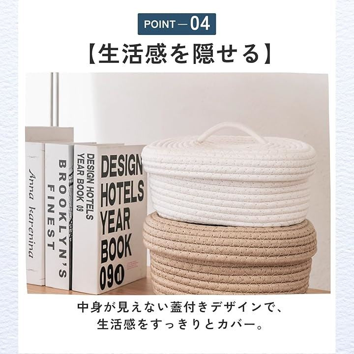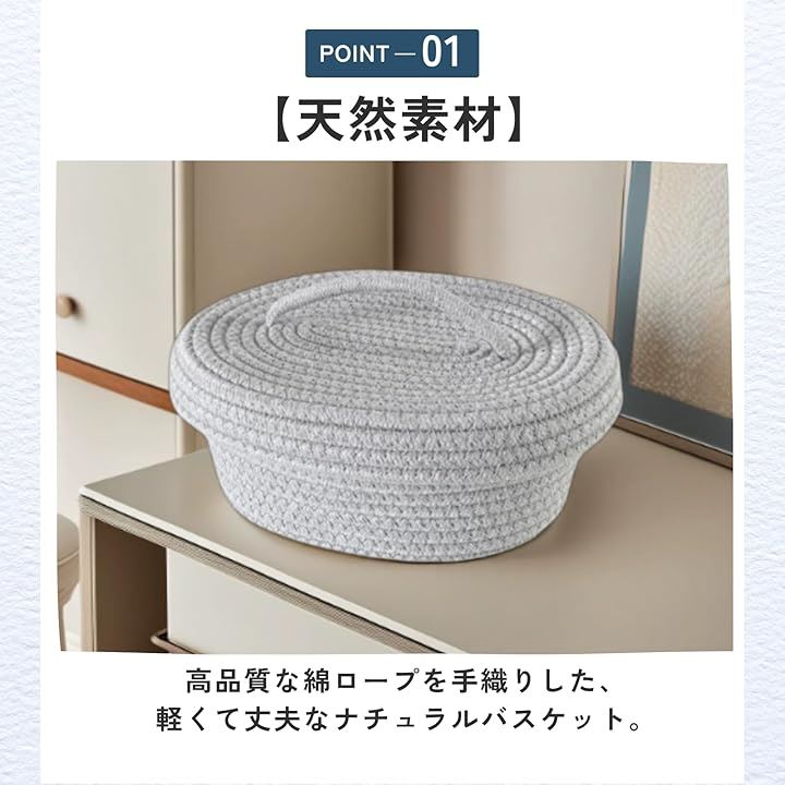 ロープバスケット ランドリーボックス かご 収納 小物入れ 蓋付き