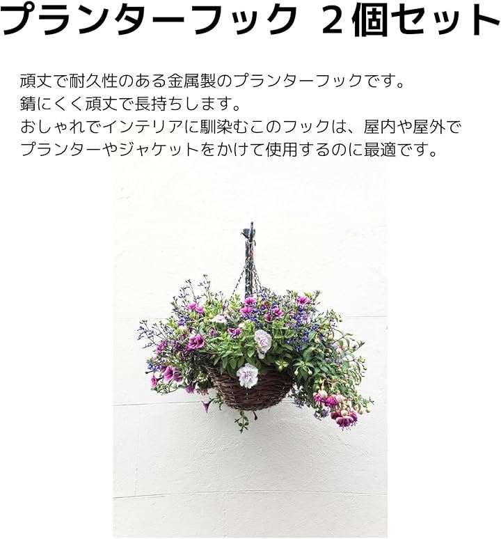 吊り下げ フック ランタン ハンガー プランター ハンギング 金具 風鈴 吊るす 植木鉢 植物 屋内 屋外 金属製 ハンガーブラケット バードフィーダー
