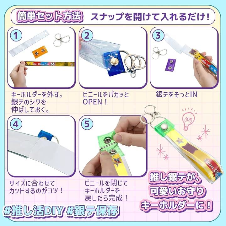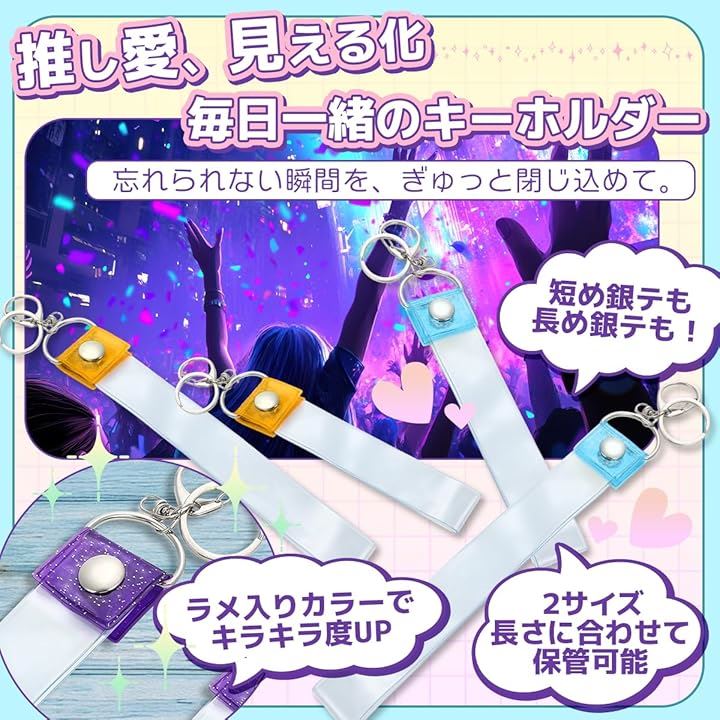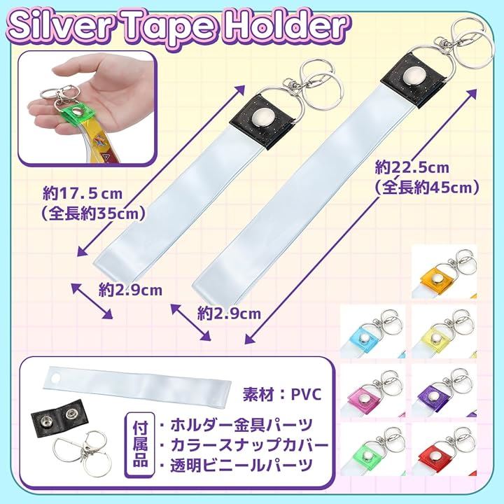 SALUDABLE 銀テープホルダー キーホルダー 収納 保管 推し活 35/45cm 2個セット |