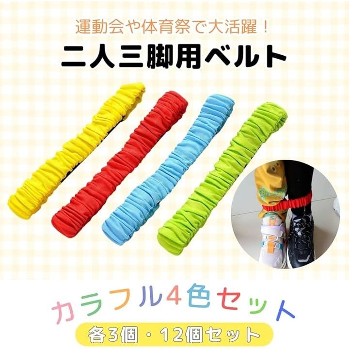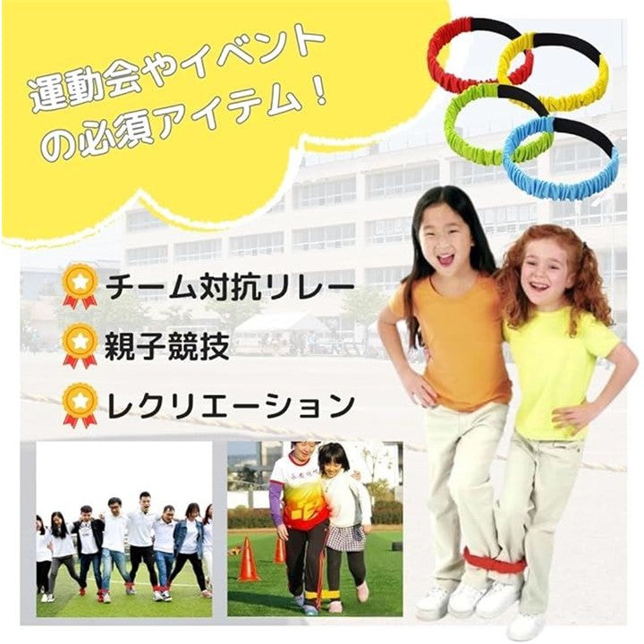 二人三脚 二人三脚用ベルト 運動会 イベント スポーツ大会 チーム対抗 リレー用ゴムベルト 幼稚園 小学校 体育祭 遊具 安全 簡単装着 カラフル 4色セット