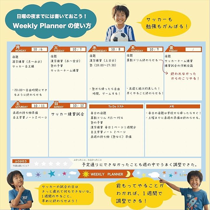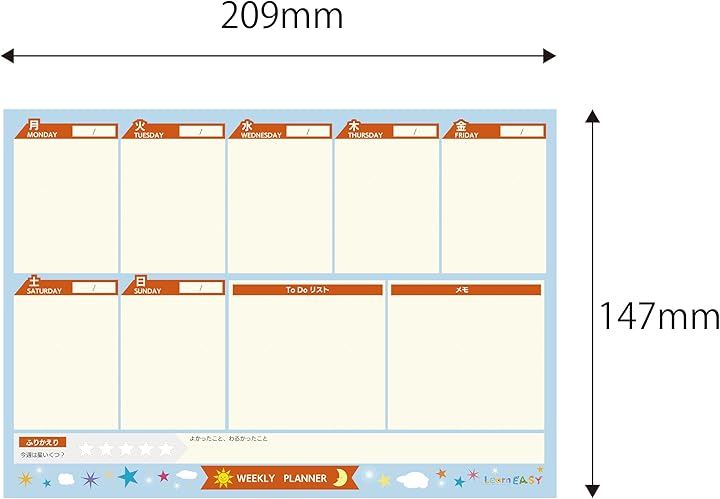 キッズ 卓上ウィークリープランナー スターターセット 予定表 計画表 子供 Weekly Planner For Kids