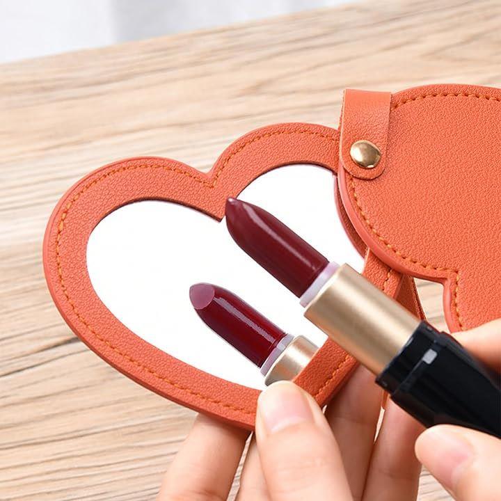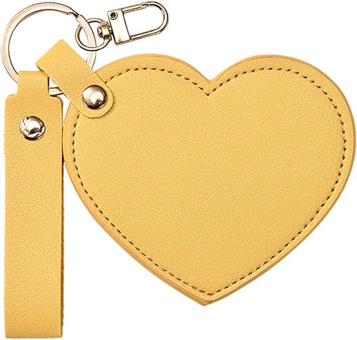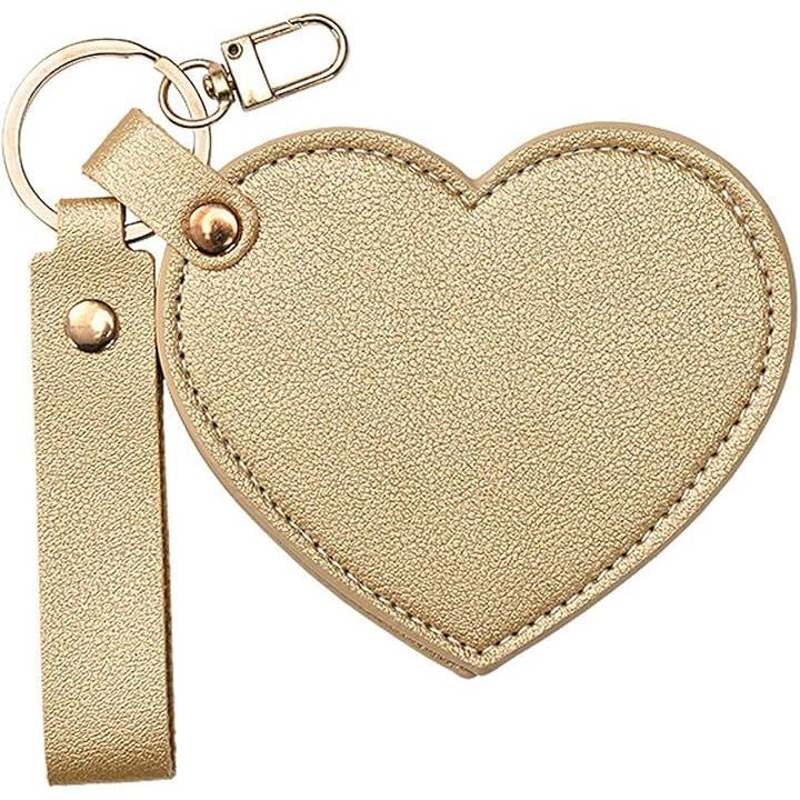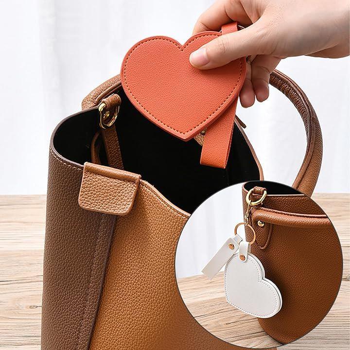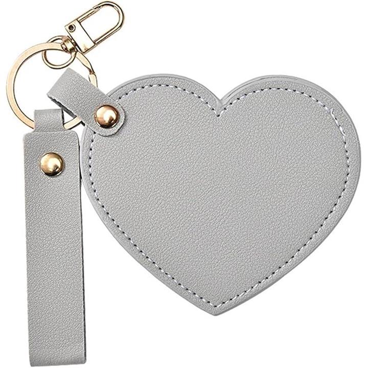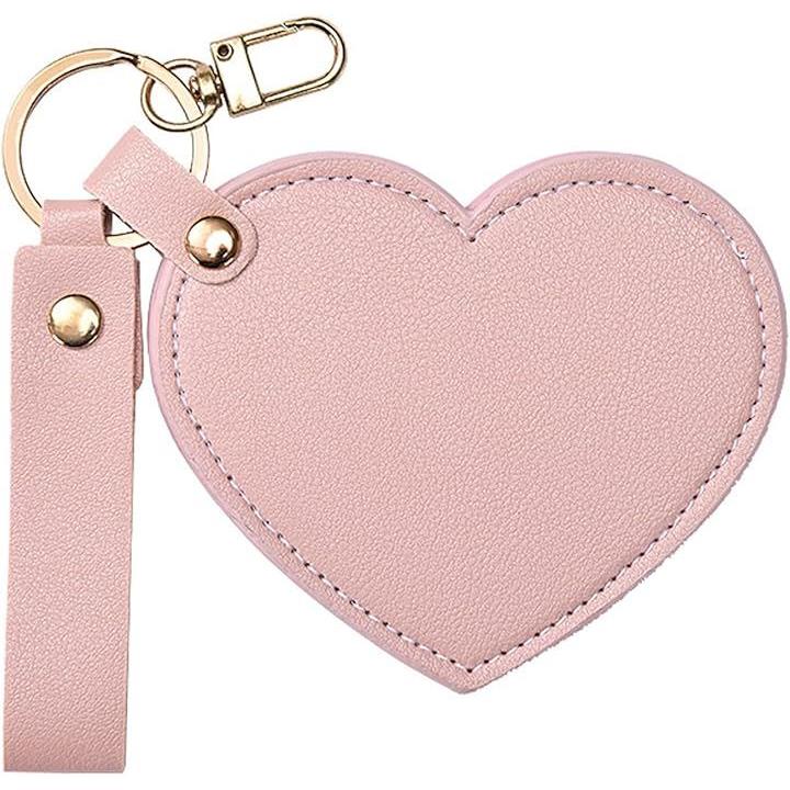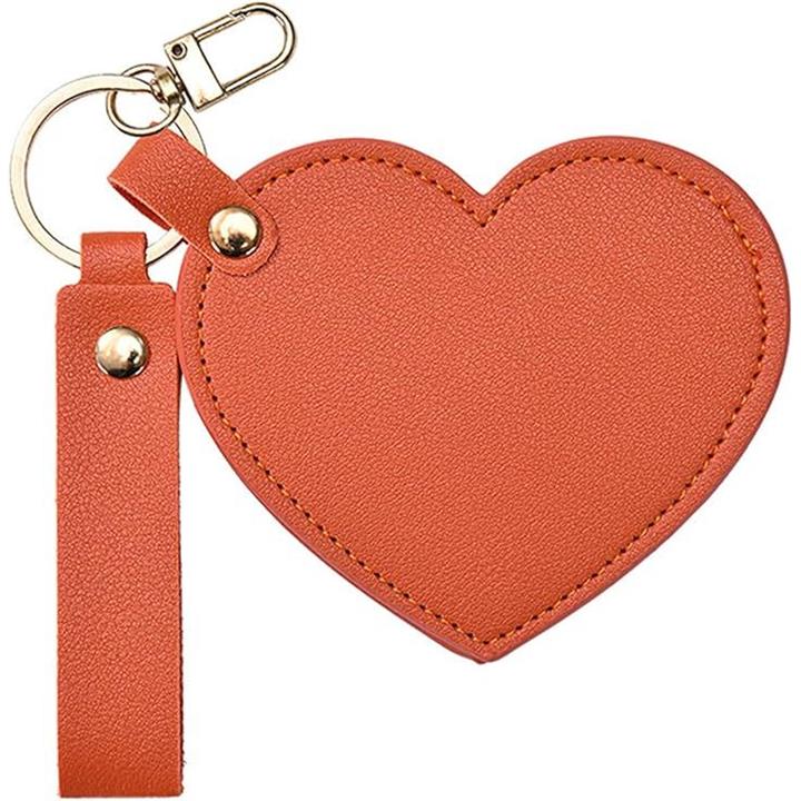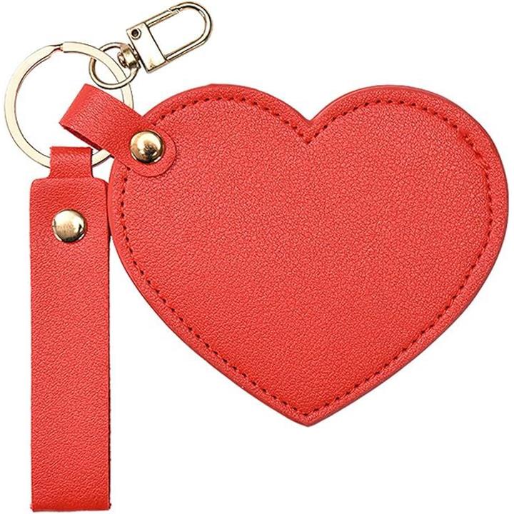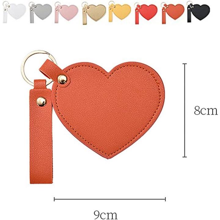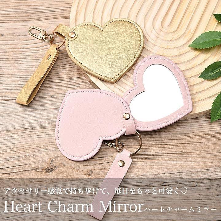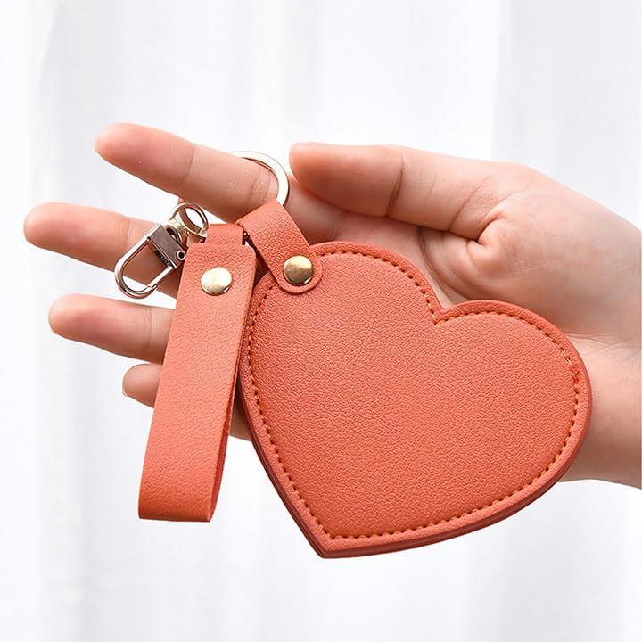 ハート ミラー キーホルダー チャーム 鏡 コンパクト 携帯 おしゃれ レディース ミニ 化粧鏡 PUレザー ポータブル かわいい 手鏡 メイク直し 持ち運び 外出