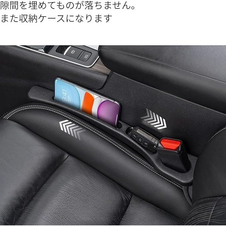 車 シート隙間埋めクッション 2本入り 収納機能アップ 落下防止 静音設計 耐摩耗 PU素材 汎用タイプ 取り付け簡単 センターコンソール用