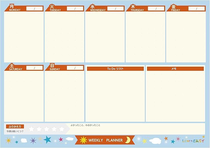 キッズ 卓上ウィークリープランナー リフィル 30枚セット 予定表 計画表 子供 Daily Planner For Kids