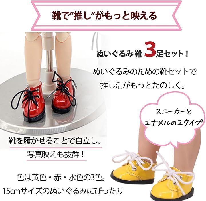 ドール用 靴セット 3足 エナメル風 人形 ぬいぐるみ コーデ小物
