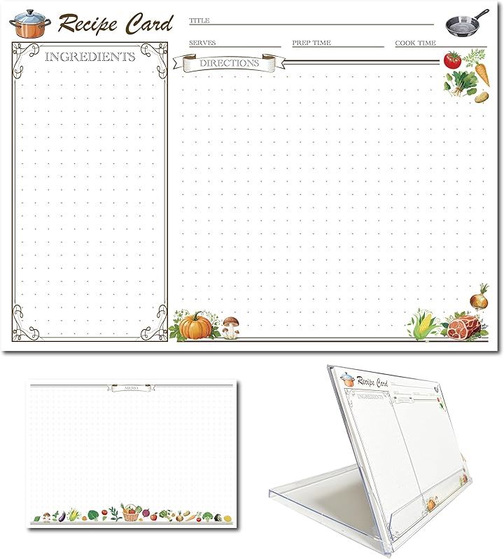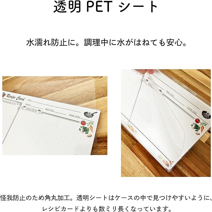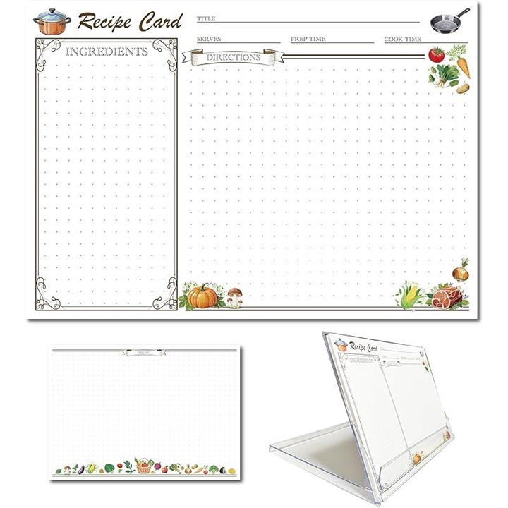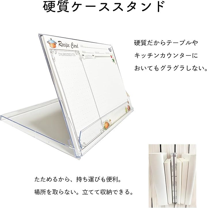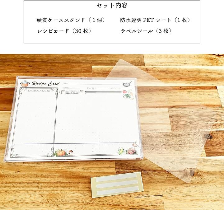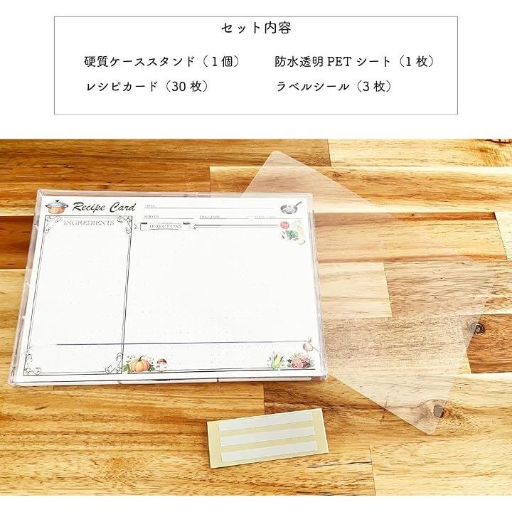 レシピカードセット 卓上スタンド付き 防水透明PETシート ラベルシール3枚付 グラグラしない おしゃれ 料理 キッチン雑貨 ギフト